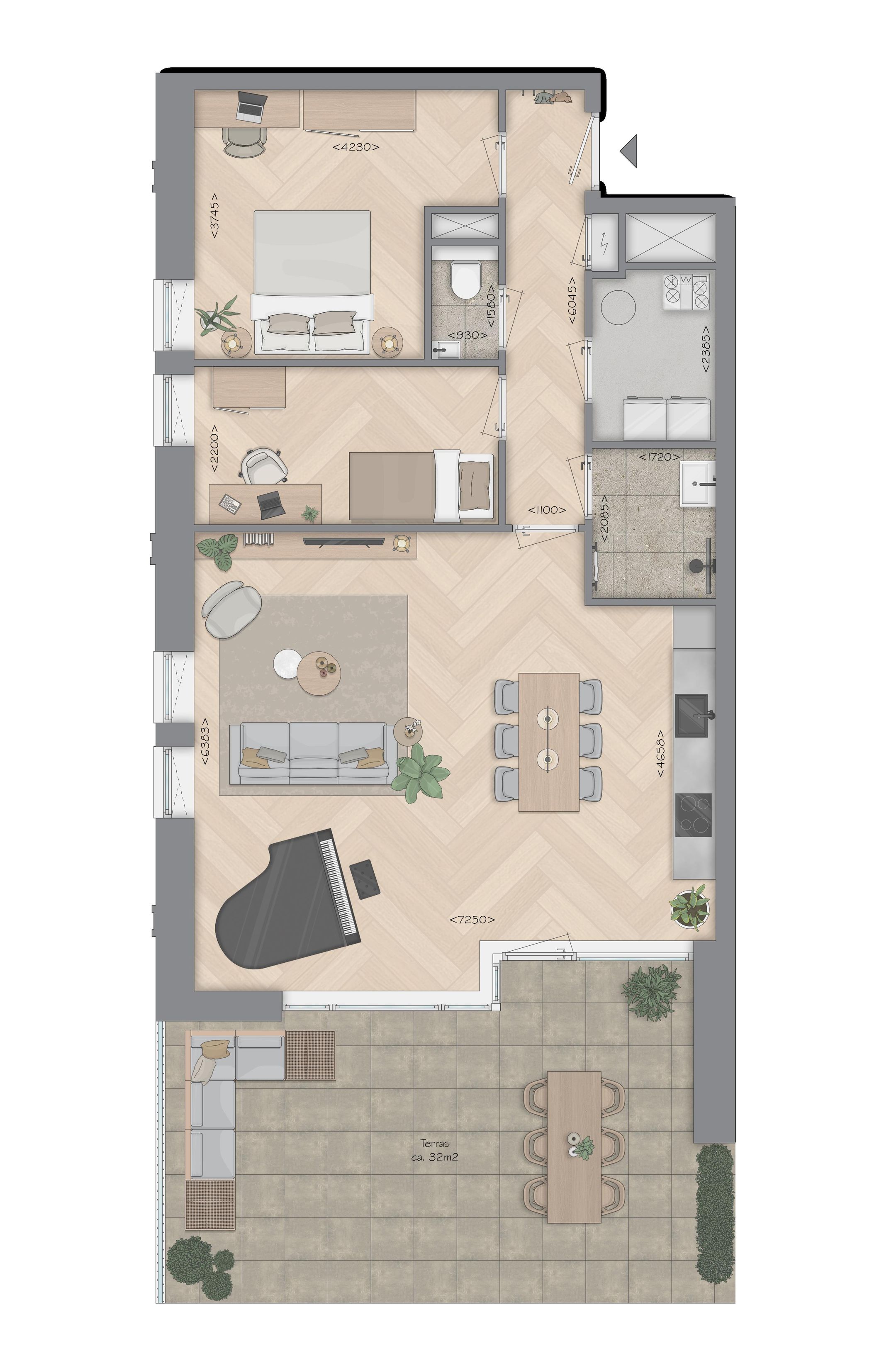 3 pokoje (2 sypialnie)
