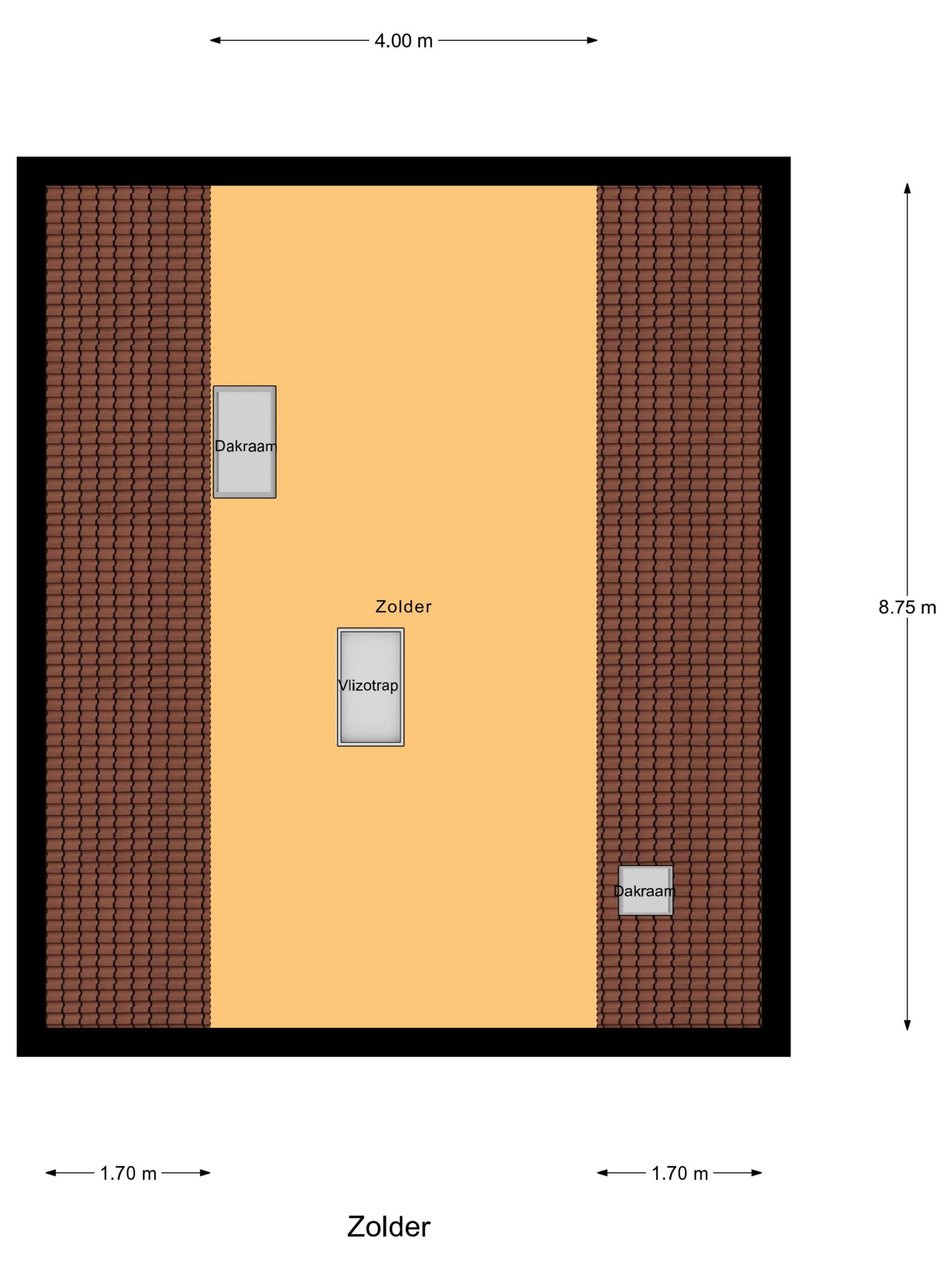 | Rodzaj dachu | Zadeldak bedekt met bitumineuze dakbedekking en pannen |