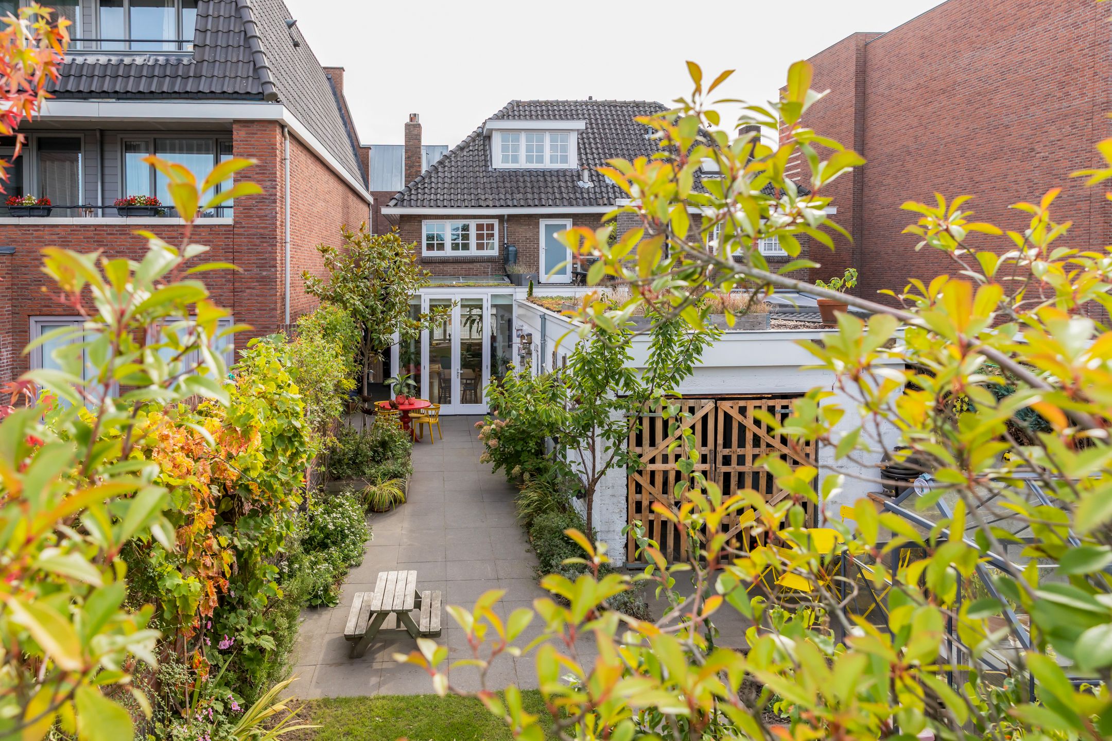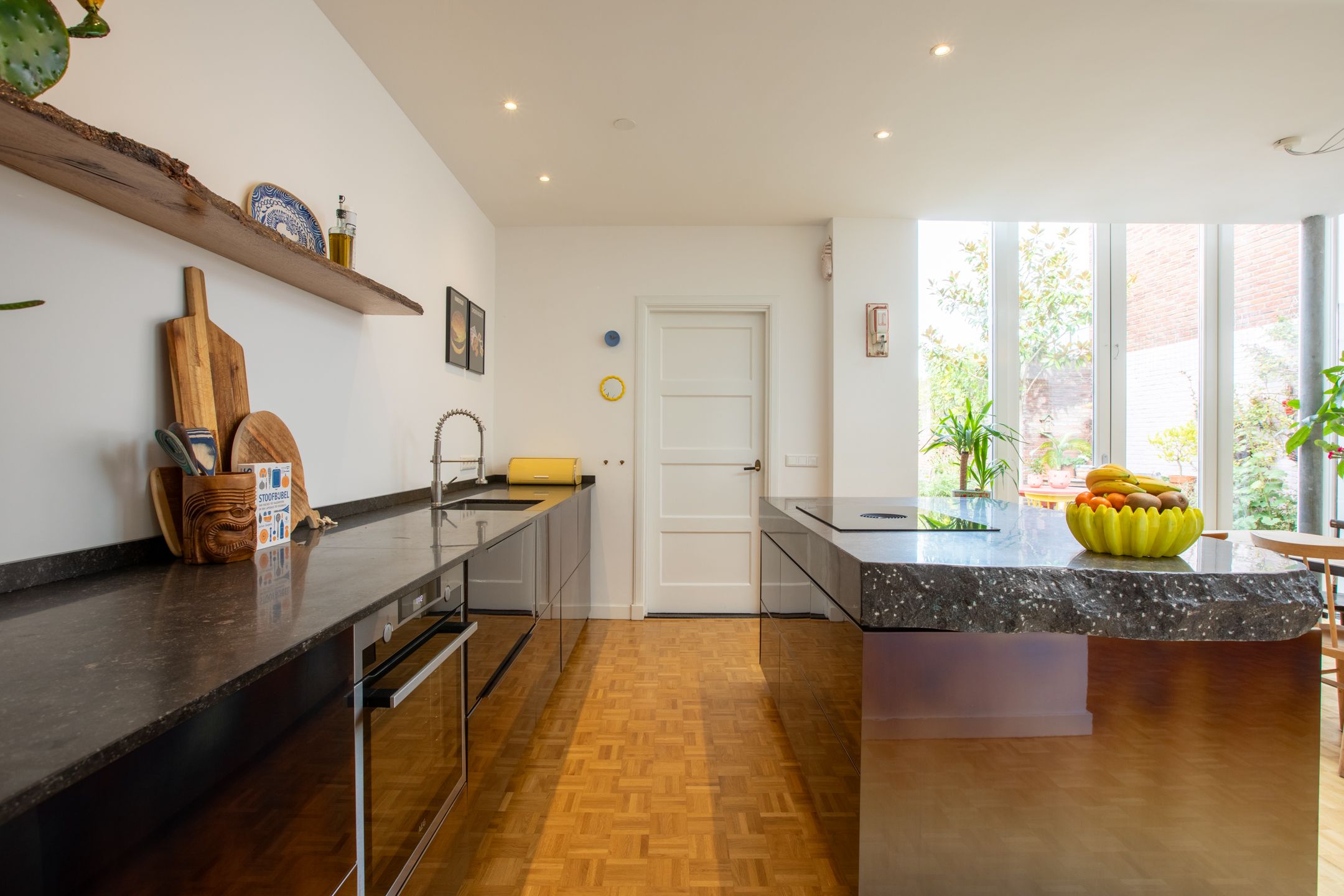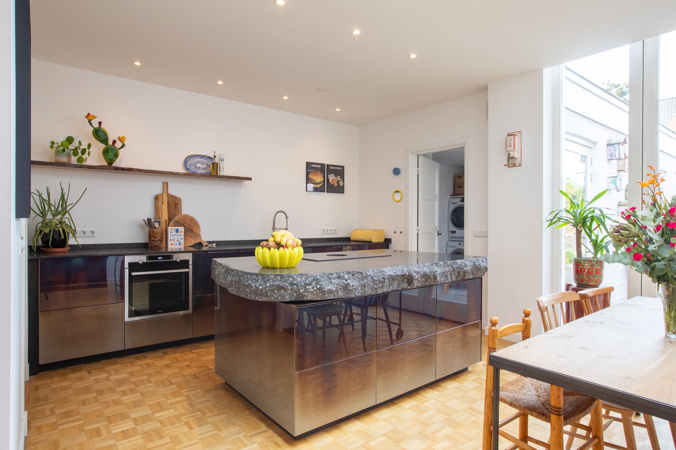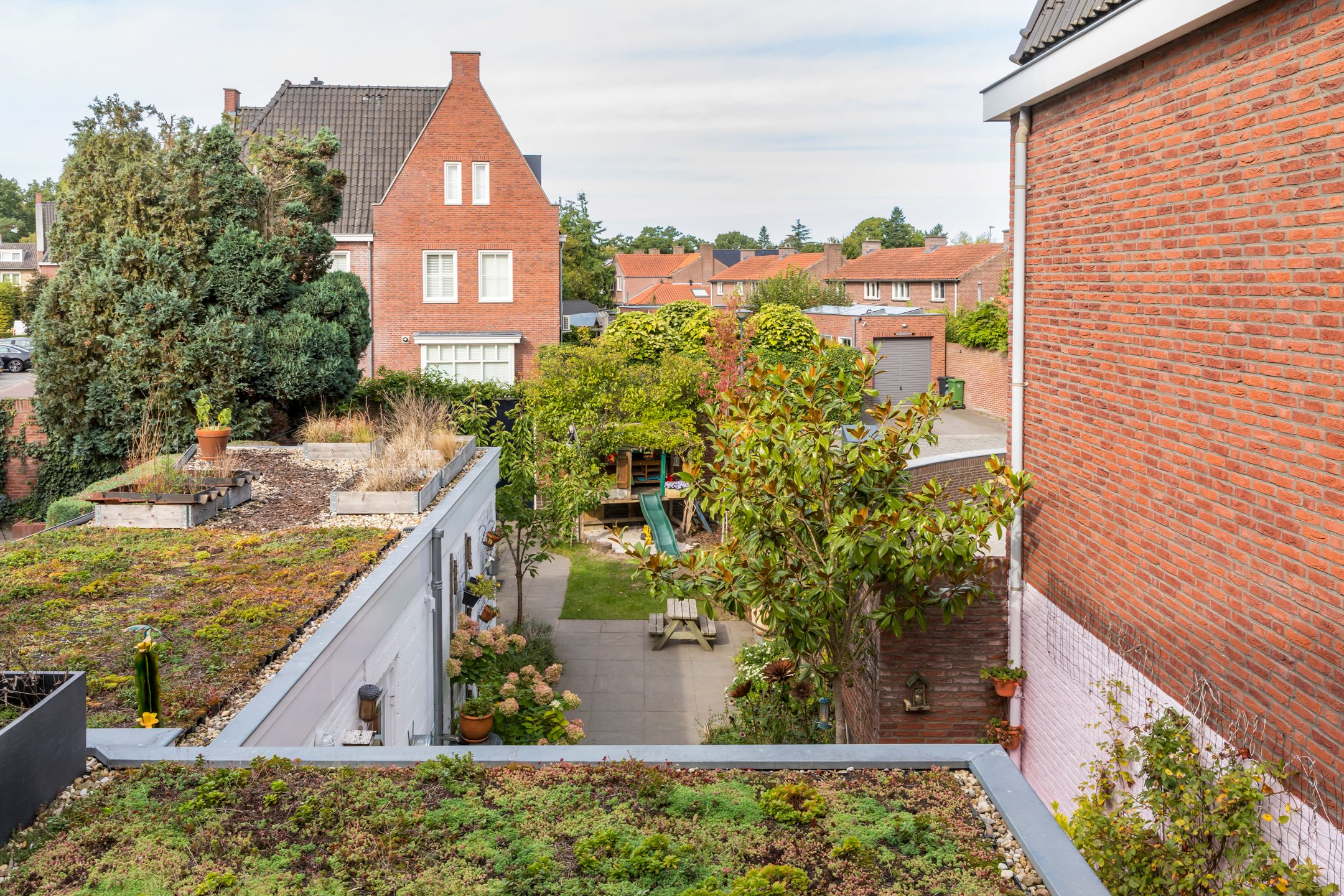 Achter de karakteristieke gevel van deze jaren '30 twee-onder-een-kapwoning gaat een verrassend ruime en smaakvol gemoderniseerde gezinswoning schuil. Gelegen midden in de dorpskern van Aalst, met fraaie authentieke details die stijlvol zijn gecombineerd met het comfort van nu. In 2021 is de woning met zorg n oog voor detail gerenoveerd. Met vier slaapkamers, twee badkamers en een diepe achtertuin op het westen heb je direct je thuisplek. Hoewel de voordeur aan de Eindhovenseweg ligt, speelt het leven zich af aan de rustige, kindvriendelijke Jan van Speykstraat aan de achterzijde. Hier vind je een gezellige woonhof waar kinderen veilig kunnen spelen, en waar je dankzij je eigen parkeerplaats nooit hoeft te zoeken naar een plekje. Een ideale plek voor gezinnen die houden van karakter, gemak en een warme dorpssfeer. Bijzonderheden: - Sfeervolle jaren 30 woning gelegen midden in de dorpskern van Aalst; - Er wordt geleefd aan de achterzijde, de voordeur wordt niet tot nauwelijks gebruikt; - Aan de achterzijde gelegen aan het kindvriendelijke woonplein van de Jan van Speykstraat. Kinderen spelen heerlijk op straat; - De woning is volledig gemoderniseerd gerenoveerd in 2021. Aan de achterzijde uitgebouwd en dakkapel geplaatst op de 2e verdieping; - Keuken en badkamer volledig vernieuwd in 2021 2022. Tweede badkamer gerealiseerd op de 2e verdieping in 2022; - In 2021 is het hoofddak en de platte daken gesoleerd. Op het platte dak is een sedum dak gerealiseerd; - In 2021 nieuwe begane grond vloer gestort met isolatie en vloerverwarming (m.u.v. hal, toilet en bijkeuken); - Schilderwerk buitenkozijnen in 2025. Kozijnen voorzien van HR++ beglazing; - Gehele meterkast vernieuwd in 2021; - Gevels gereinigd in 2017; - Priv parkeerplaats aan de achterzijde van de woning; - Uitstekende locatie in de nabijheid van diverse voorzieningen. De Eindhovenseweg is recent gereconstrueerd en verkeersarmer gemaakt; - Energielabel C; - Busverbinding naar Eindhoven centrum en Station Eindhoven direct voor de deur; - Zeer centraal gelegen t.o.v. van de dorpskern van Aalst en bedrijven uit de regio zoals ASML, MMC en HTC. Op fietsafstand van kinderopvang, diverse basisscholen en het voortgezet onderwijs. Indeling Begane grond Al bij binnenkomst word je welkom geheten door authentieke details die direct de sfeer bepalen: een prachtige ronde boogdeur met vernieuwd n gesoleerd glas-in-lood zet de toon. De entree leidt naar een vestibule met de trapopgang naar de eerste verdieping en toegang tot de meterkast. Via een klassieke klapdeur stap je de centrale hal binnen, die toegang biedt tot het toilet, de kelder en het woongedeelte. Het woongedeelte verrast door het overvloedige daglicht en de hoge plafonds. Aan de voorzijde bevindt zich een zithoek met een sfeervolle houtkachel d plek om te ontspannen. De warme houten vloer met vloerverwarming loopt naadloos door naar de achterzijde, waar de woonkeuken zich bevindt. Deze stijlvolle woonkeuken is een absolute blikvanger en vormt het hart van de woning. Het robuuste kookeiland met zijn unieke granieten blad is niet alleen functioneel, maar ook een kunstwerk op zich. De combinatie van hoogglans, gebrande stalen fronten en natuurlijke materialen geeft de keuken een stoere n warme uitstraling. De op maat gemaakte keuken (2021) is uitgerust met hoogwaardige inbouwapparatuur, waaronder een Bora inductiekookplaat met gentegreerde afzuiging, een oven, koel-vriescombinatie en twee praktische koellades. Aansluitend aan de keuken bevindt zich een praktische bijkeuken met een tweede keukenblok, aansluitingen voor wasapparatuur, een garderobe n directe toegang tot de achtertuin. 1e verdieping De overloop op de eerste verdieping biedt toegang tot drie slaapkamers, allen voorzien van een houten vloer. Twee van de kamers zijn ruim genoeg voor een tweepersoonsbed en beschikken beide over een praktische inbouwkast. De derde kamer is perfect als werkkamer, hobbyruimte of kinderkamer. De moderne badkamer (gerenoveerd in 2021) ademt de sfeer van de jaren '30, dankzij de stijlvolle betegeling en klassieke details. Tegelijkertijd is het comfort helemaal van nu: een ruim wastafelmeubel, een ligbad en een toilet maken deze badkamer compleet. Vanuit de badkamer is er bovendien toegang tot een dakterras aan de achterzijde uitkijkend over de tuin en de sedum platte daken. Via een vaste trap is de tweede verdieping bereikbaar. 2e verdieping De tweede verdieping voelt als een moderne priv-suite. De open vierde slaapkamer is ruim en sfeervol, met een dakkapel (2021) en drie dakramen die zorgen voor veel lichtinval. Onder de schuinte van het dak is volop bergruimte aanwezig door de kasten die hier zijn gecreerd. Een extra pluspunt is de open tweede badkamer, (2022) stijlvol vormgegeven met een knipoog naar de jaren '30 dankzij de terrazzo betegeling. De ruimte is voorzien van een wastafel, inloopdouche en toilet. De aanwezige airco zorgt voor verkoeling in de zomer n verwarming in de winter. Tuin Aan de achterzijde van de woning bevindt zich een verrassend diepe en fraai aangelegde tuin, waar het leven zich echt afspeelt. Dankzij de ligging op het westen geniet je hier volop van de middag- en avondzon. Meerdere terrassen omringd door volwassen beplanting, kleurrijke borders en diverse bomen. Voor de liefhebber is er een tuinkas n een moestuin aanwezig. Achterin de tuin, gekoppeld aan de woning, staat een oude garage, die zich uitstekend leent voor verschillende doeleinden: een overdekt buitenterras, een speelruimte voor de kinderen, een hobbyruimte of zelfs uitbreiding van de woning. De mogelijkheden zijn eindeloos. Via een poort aan de voorzijde is er directe toegang tot een praktische, afgesloten berging naast het huis keurig geordend en ideaal voor opslag en tuingereedschap. Aan de achterzijde kom je uit bij je eigen priv parkeerplaats en het kindvriendelijke woonhof. Fijn contact met de buurt een perfecte plek voor gezinnen die graag buiten leven. Ligging: De woning is gelegen in een bosrijke omgeving