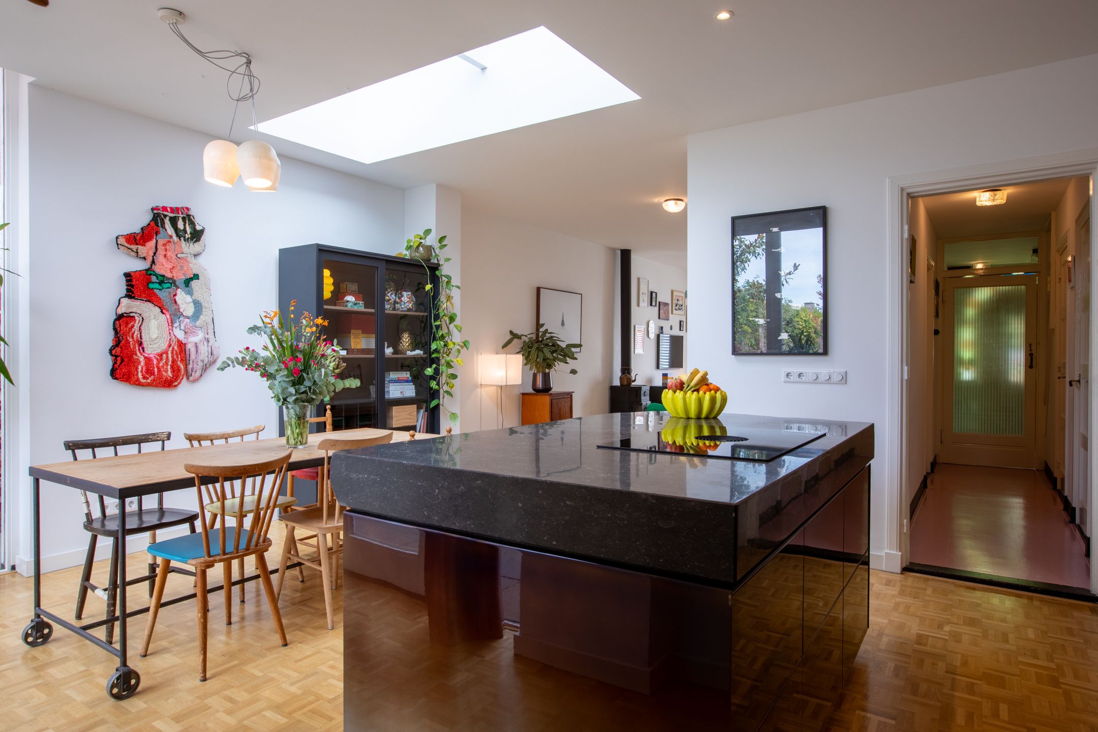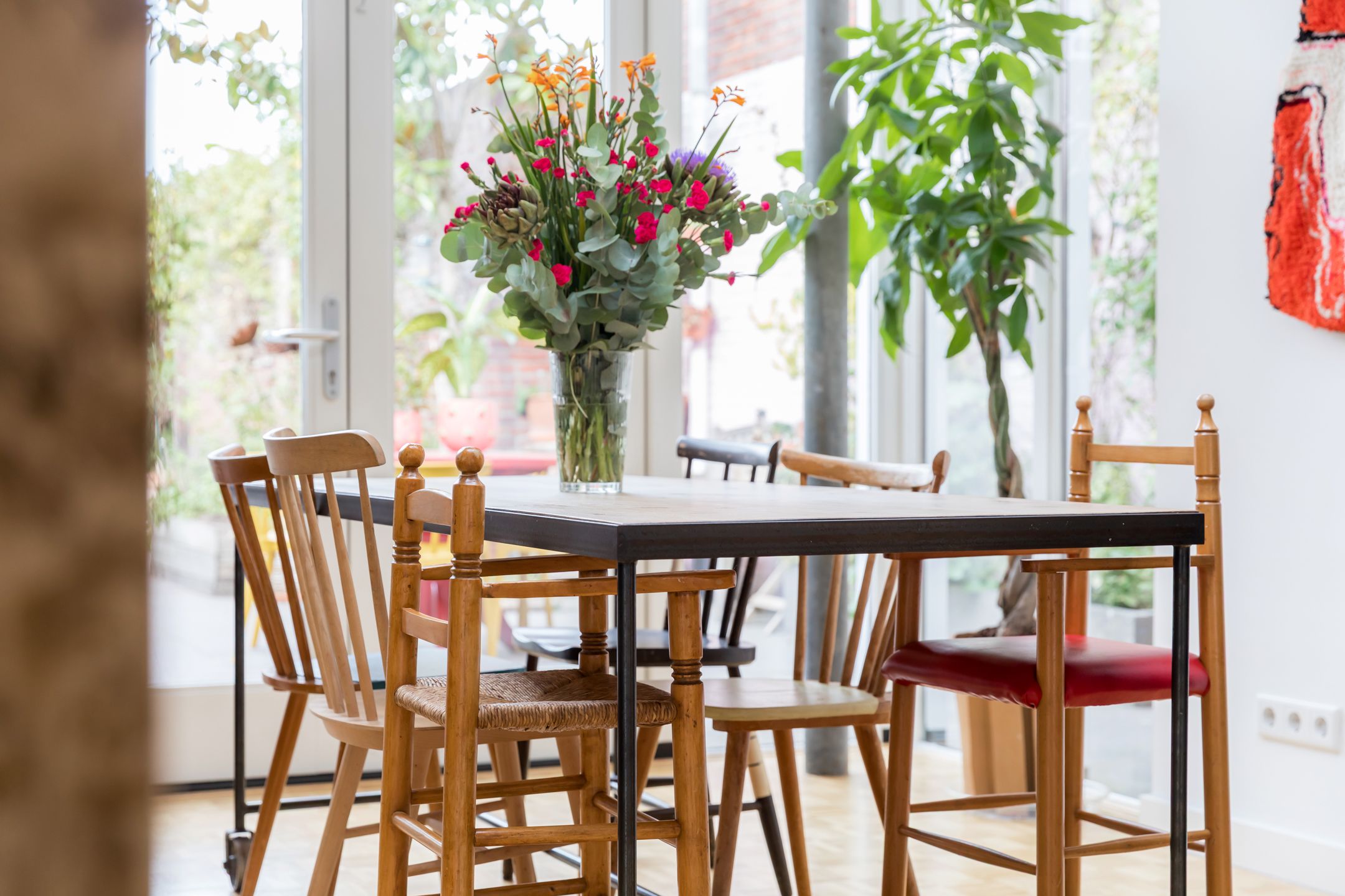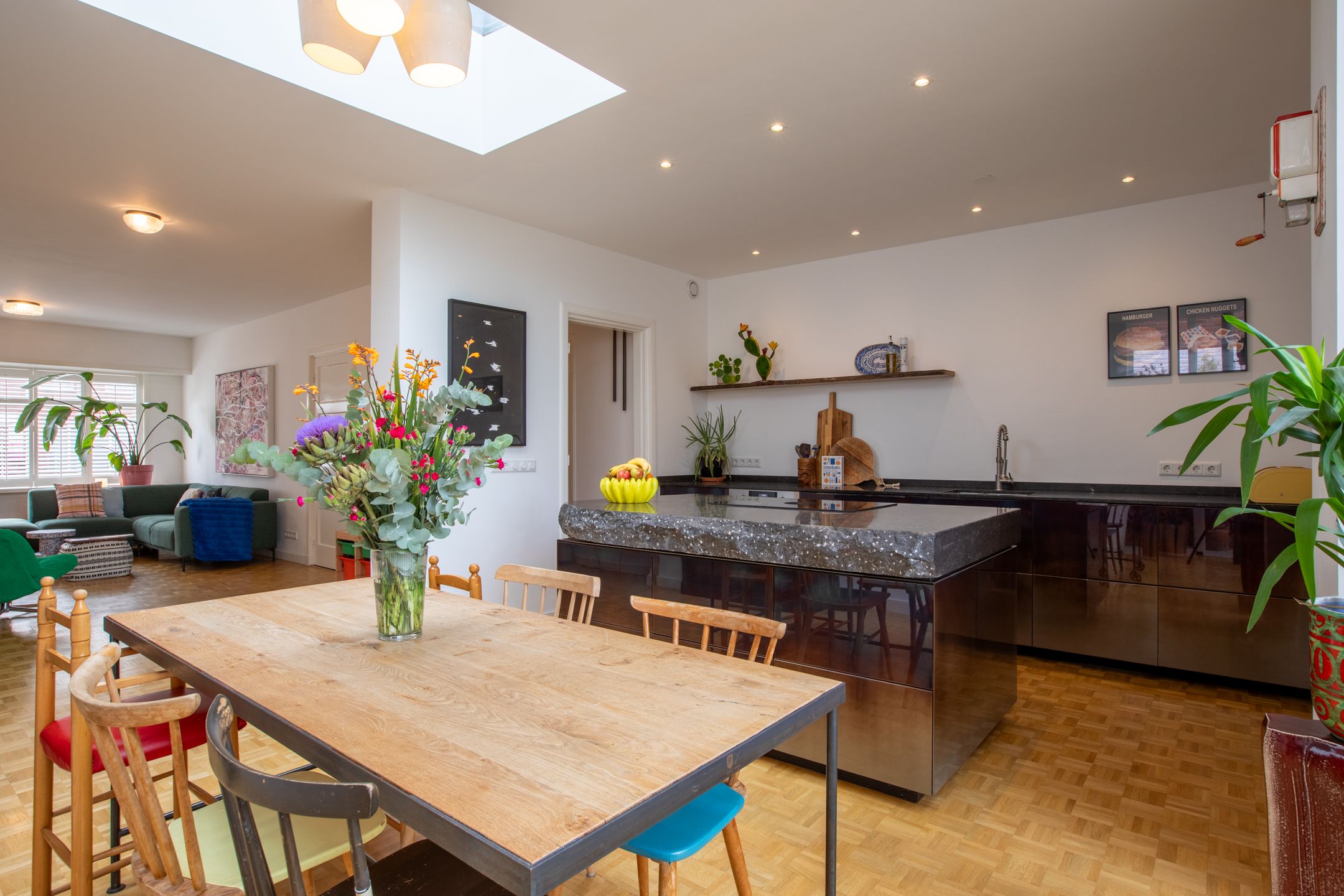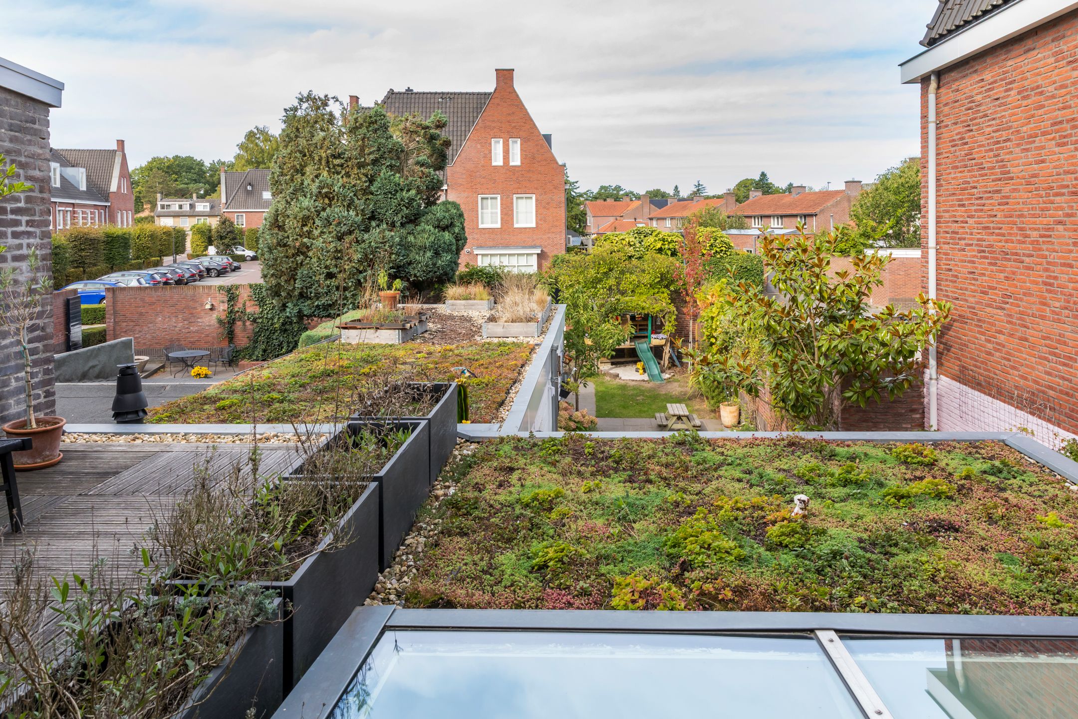 Achter de karakteristieke gevel van deze jaren '30 twee-onder-een-kapwoning gaat een verrassend ruime en smaakvol gemoderniseerde gezinswoning schuil. Gelegen midden in de dorpskern van Aalst, met fraaie authentieke details die stijlvol zijn gecombineerd met het comfort van nu. In 2021 is de woning met zorg n oog voor detail gerenoveerd. Met vier slaapkamers, twee badkamers en een diepe achtertuin op het westen heb je direct je thuisplek. Hoewel de voordeur aan de Eindhovenseweg ligt, speelt het leven zich af aan de rustige, kindvriendelijke Jan van Speykstraat aan de achterzijde. Hier vind je een gezellige woonhof waar kinderen veilig kunnen spelen, en waar je dankzij je eigen parkeerplaats nooit hoeft te zoeken naar een plekje. Een ideale plek voor gezinnen die houden van karakter, gemak en een warme dorpssfeer. Bijzonderheden: - Sfeervolle jaren 30 woning gelegen midden in de dorpskern van Aalst; - Er wordt geleefd aan de achterzijde, de voordeur wordt niet tot nauwelijks gebruikt; - Aan de achterzijde gelegen aan het kindvriendelijke woonplein van de Jan van Speykstraat. Kinderen spelen heerlijk op straat; - De woning is volledig gemoderniseerd gerenoveerd in 2021. Aan de achterzijde uitgebouwd en dakkapel geplaatst op de 2e verdieping; - Keuken en badkamer volledig vernieuwd in 2021 2022. Tweede badkamer gerealiseerd op de 2e verdieping in 2022; - In 2021 is het hoofddak en de platte daken gesoleerd. Op het platte dak is een sedum dak gerealiseerd; - In 2021 nieuwe begane grond vloer gestort met isolatie en vloerverwarming (m.u.v. hal, toilet en bijkeuken); - Schilderwerk buitenkozijnen in 2025. Kozijnen voorzien van HR++ beglazing; - Gehele meterkast vernieuwd in 2021; - Gevels gereinigd in 2017; - Priv parkeerplaats aan de achterzijde van de woning; - Uitstekende locatie in de nabijheid van diverse voorzieningen. De Eindhovenseweg is recent gereconstrueerd en verkeersarmer gemaakt; - Energielabel C; - Busverbinding naar Eindhoven centrum en Station Eindhoven direct voor de deur; - Zeer centraal gelegen t.o.v. van de dorpskern van Aalst en bedrijven uit de regio zoals ASML, MMC en HTC. Op fietsafstand van kinderopvang, diverse basisscholen en het voortgezet onderwijs. Indeling Begane grond Al bij binnenkomst word je welkom geheten door authentieke details die direct de sfeer bepalen: een prachtige ronde boogdeur met vernieuwd n gesoleerd glas-in-lood zet de toon. De entree leidt naar een vestibule met de trapopgang naar de eerste verdieping en toegang tot de meterkast. Via een klassieke klapdeur stap je de centrale hal binnen, die toegang biedt tot het toilet, de kelder en het woongedeelte. Het woongedeelte verrast door het overvloedige daglicht en de hoge plafonds. Aan de voorzijde bevindt zich een zithoek met een sfeervolle houtkachel d plek om te ontspannen. De warme houten vloer met vloerverwarming loopt naadloos door naar de achterzijde, waar de woonkeuken zich bevindt. Deze stijlvolle woonkeuken is een absolute blikvanger en vormt het hart van de woning. Het robuuste kookeiland met zijn unieke granieten blad is niet alleen functioneel, maar ook een kunstwerk op zich. De combinatie van hoogglans, gebrande stalen fronten en natuurlijke materialen geeft de keuken een stoere n warme uitstraling. De op maat gemaakte keuken (2021) is uitgerust met hoogwaardige inbouwapparatuur, waaronder een Bora inductiekookplaat met gentegreerde afzuiging, een oven, koel-vriescombinatie en twee praktische koellades. Aansluitend aan de keuken bevindt zich een praktische bijkeuken met een tweede keukenblok, aansluitingen voor wasapparatuur, een garderobe n directe toegang tot de achtertuin. 1e verdieping De overloop op de eerste verdieping biedt toegang tot drie slaapkamers, allen voorzien van een houten vloer. Twee van de kamers zijn ruim genoeg voor een tweepersoonsbed en beschikken beide over een praktische inbouwkast. De derde kamer is perfect als werkkamer, hobbyruimte of kinderkamer. De moderne badkamer (gerenoveerd in 2021) ademt de sfeer van de jaren '30, dankzij de stijlvolle betegeling en klassieke details. Tegelijkertijd is het comfort helemaal van nu: een ruim wastafelmeubel, een ligbad en een toilet maken deze badkamer compleet. Vanuit de badkamer is er bovendien toegang tot een dakterras aan de achterzijde uitkijkend over de tuin en de sedum platte daken. Via een vaste trap is de tweede verdieping bereikbaar. 2e verdieping De tweede verdieping voelt als een moderne priv-suite. De open vierde slaapkamer is ruim en sfeervol, met een dakkapel (2021) en drie dakramen die zorgen voor veel lichtinval. Onder de schuinte van het dak is volop bergruimte aanwezig door de kasten die hier zijn gecreerd. Een extra pluspunt is de open tweede badkamer, (2022) stijlvol vormgegeven met een knipoog naar de jaren '30 dankzij de terrazzo betegeling. De ruimte is voorzien van een wastafel, inloopdouche en toilet. De aanwezige airco zorgt voor verkoeling in de zomer n verwarming in de winter. Tuin Aan de achterzijde van de woning bevindt zich een verrassend diepe en fraai aangelegde tuin, waar het leven zich echt afspeelt. Dankzij de ligging op het westen geniet je hier volop van de middag- en avondzon. Meerdere terrassen omringd door volwassen beplanting, kleurrijke borders en diverse bomen. Voor de liefhebber is er een tuinkas n een moestuin aanwezig. Achterin de tuin, gekoppeld aan de woning, staat een oude garage, die zich uitstekend leent voor verschillende doeleinden: een overdekt buitenterras, een speelruimte voor de kinderen, een hobbyruimte of zelfs uitbreiding van de woning. De mogelijkheden zijn eindeloos. Via een poort aan de voorzijde is er directe toegang tot een praktische, afgesloten berging naast het huis keurig geordend en ideaal voor opslag en tuingereedschap. Aan de achterzijde kom je uit bij je eigen priv parkeerplaats en het kindvriendelijke woonhof. Fijn contact met de buurt een perfecte plek voor gezinnen die graag buiten leven. Ligging: De woning is gelegen in een bosrijke omgeving