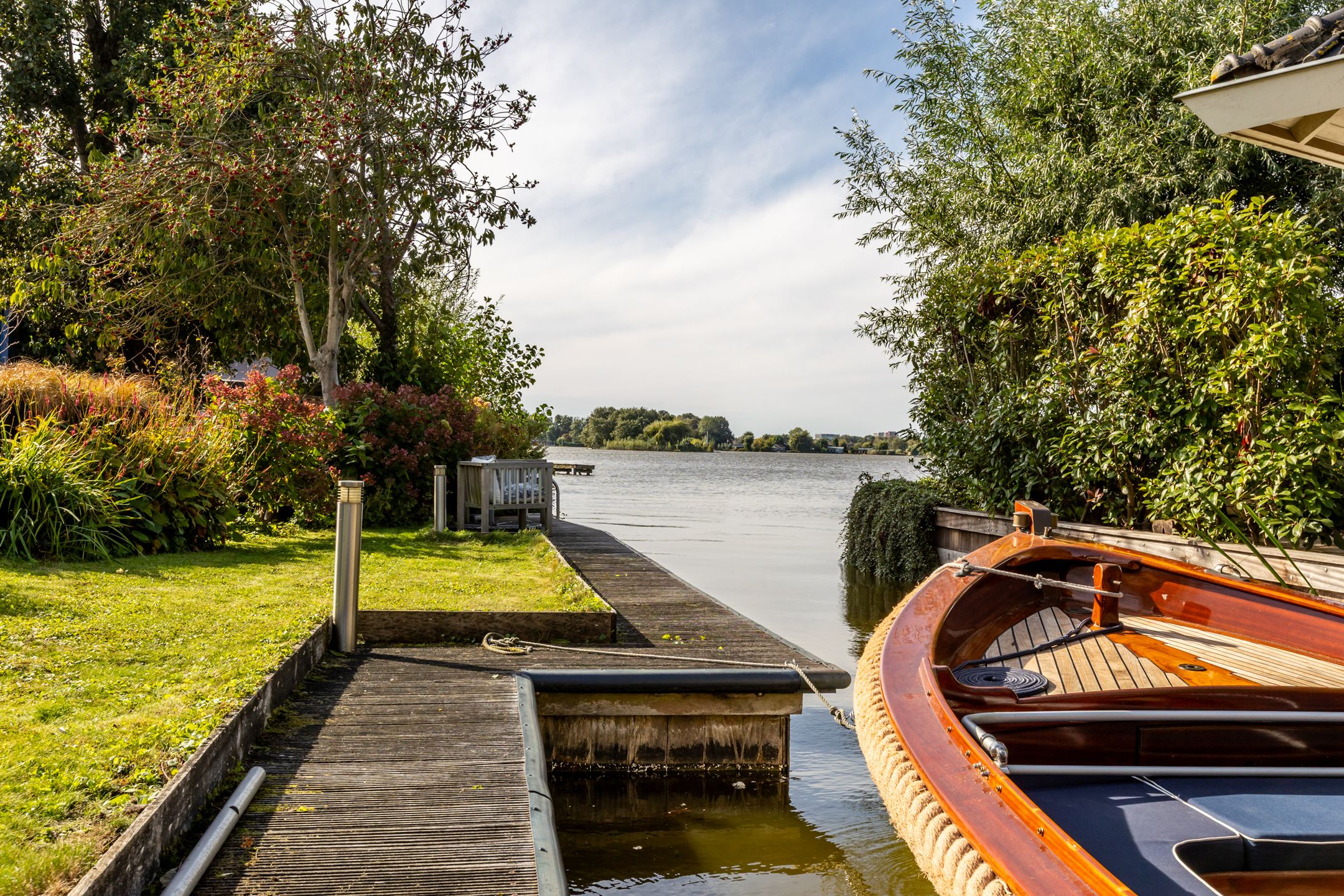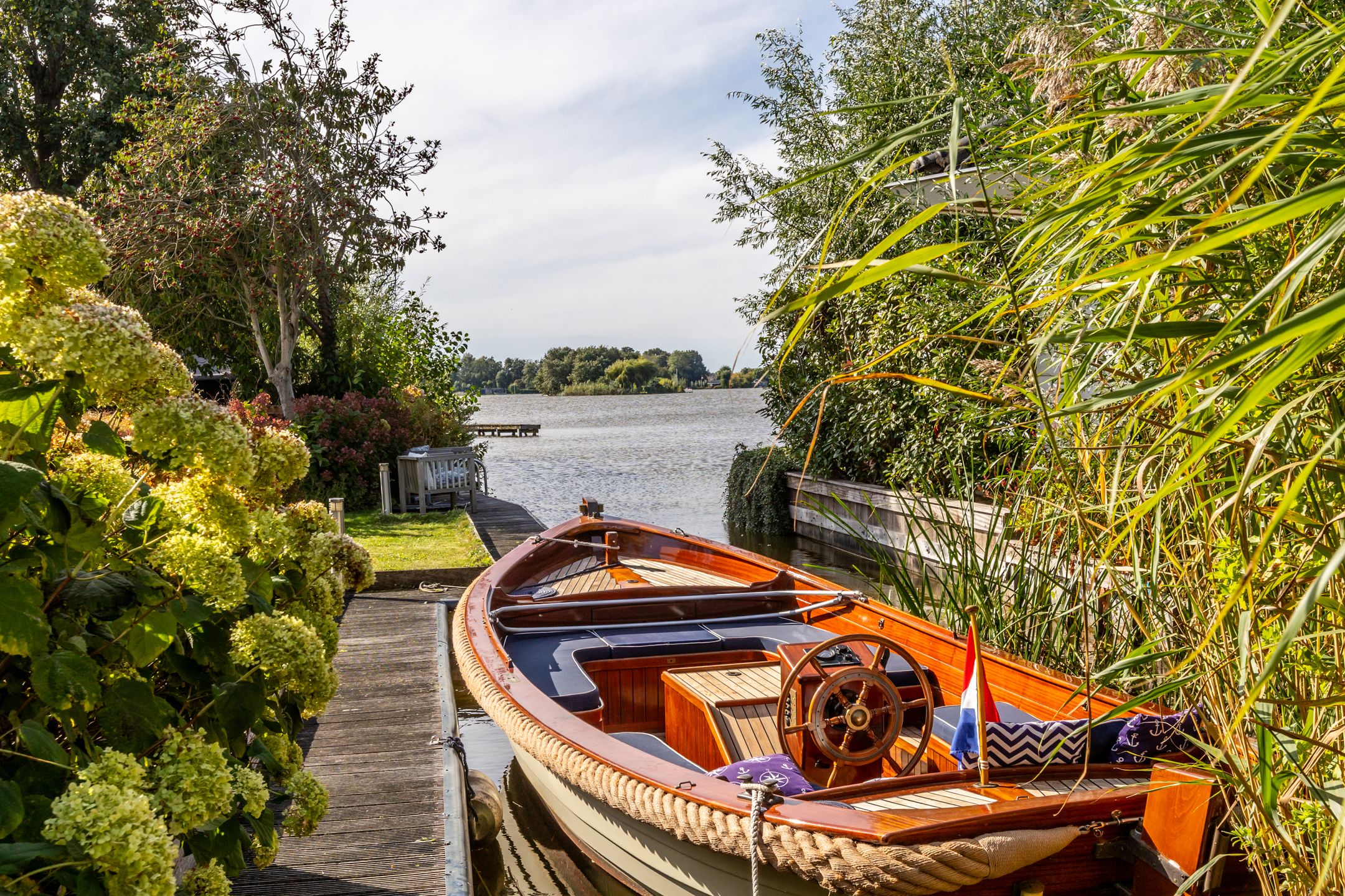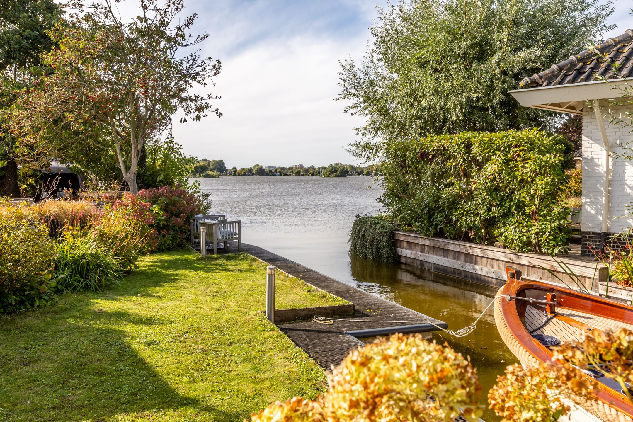 Op een unieke plek in Reeuwijk, aan de s-Gravenbroekseweg staat deze vrijstaande woning met een fraai aangelegde tuin rondom, royale parkeergelegenheid op eigen terrein en een inpandig bereikbare garage. Hier geniet u van het echte buitenleven: zwemmen vanuit uw eigen tuin, ontspannen op het ruime terras of varen vanaf uw eigen havenligplaats. De zonnige achtertuin met zuidwest-ligging biedt een schitterend uitzicht over de plas, volop privacy en meerdere plekken om te genieten van zon en water. Vanaf de voorzijde is er prachtig uitzicht op het weilandslagenlandschap met koeien, schapen en weidevogels. Binnen beschikt de woning over drie ruime slaapkamers (met mogelijkheid tot een vierde), lichte leefruimtes en praktische extras zoals een houten berging en garage. Bijzonderheden: - Vrijstaande woning; - Heerlijke tuin aan de s Gravenbroekseplas; - Ruime parkeergelegenheid op eigen terrein; - Inpandig bereikbare garage; - Houten berging; - Aan vaarwater, direct zwemmogelijkheid vanuit je tuin; - Royaal onderheid terras; - 3 ruime slaapkamers, 4e slaapkamer mogelijkheid; - Studeerkamer op de begane grond; - Dakpannen en goten vernieuwd (2025); - Woning v.v. HR++ beglazing (2024); - Aluminium schuifpui (woonkamer) met triple glas (2023); - CV-ketel HR (bouwjaar 2000, in 2023 gereviseerd en nieuwe brander geplaatst); - Houthaard (Barbas); - 2 zonnepanelen gelegen op dak van de berging; - Elektrisch bedienbare zonwering aan de zijkant van de woning op het zuidwesten; - Schilderwerk houten kozijnen 2024; - Alarmsysteem met bewakingscamera's voor en achter aanwezig in de woning; - (vergunningsvrije) uitbouw mogelijkheden aan zijkant en achterkant van de woonkamerwoning; - Winkelcentrum de Miereakker bevindt zich op 5 minuten loopafstand. Indeling: Begane grond: Ruime entree met garderobe, meterkast (12 groepen, krachtstroom en dubbele kookgroep) en een modern toilet met Italiaans sanitair, wastafel en volledig betegelde afwerking. De trapopgang is uitgevoerd in hout (zwart geverfd) en er is inpandig toegang tot de garage. De garage beschikt over een garagedeur aan de voorzijde en een loopdeur naar de achtertuin, aansluitingen voor wasapparatuur, verwarming, water, elektra, tegelvloer en een praktische gootsteen. Via de glazen deur bereikt u vanuit de hal, de woonkamer en keuken. De lichte en sfeervolle woonkamer is uitgerust met een moderne inbouw houthaard (Barbas, 2023) en biedt een schitterend uitzicht op zowel de tuin als de s-Gravenbroekseplas. De wanden en het plafond zijn strak afgewerkt met glad stucwerk en de aluminium schuifpui met triple glas zorgt voor extra licht en isolatie. Aan de voorzijde bevindt zich een ruime studeerkamer met vaste kastenwand. De open woonkeuken ligt eveneens aan de voorzijde en is uitgerust met een kastenwand met o.a. Siemens inbouwapparatuur (koffiemachine, oven, koel-vriescombinatie) en een apothekerskast. Het kook-spoeleiland heeft een Volkern werkblad, spoelbak, 4-pits keramische kookplaat, rvs-afzuigkap, vaatwasser en royale softclose laden. Vanuit de keuken en de studeerkamer is er fraai uitzicht over de polder aan de voorzijde. De entree, keuken, woonkamer en studeerkamer zijn voorzien van een PVC vloer in vergrijsd eikenlook met vloerverwarming (2016). Eerste verdieping: Overloop met toegang tot het separate toilet in dezelfde stijl als beneden (Italiaans sanitair, fontein, volledig betegeld). Slaapkamer 1 (voorzijde): royale kamer met extra diepe schuifwandkast en vaste kast met cv-opstelling (Nefit, 2000). Slaapkamer 2 (achterzijde): ruime kamer met deur naar het balkon (houten hekwerk met glas). Deze kamer kan worden gesplitst om een extra kamer te creren en beschikt over een vaste wandhangkast. Masterbedroom: royale slaapkamer met hoge nok en diepe schuifwandkast. De luxe badkamer met dakkapel is voorzien van een inloopdouche met glazen wand en sunshower, een design wastafelmeubel (Detremmerie, Belgisch design) met dubbele kom, dubbele kraan en softclose laden, een spiegelkast met verlichting en verwarming (beiden 2023), luxe tegelafwerking (hoogglans zwart gecombineerd met wit) en een elektrische designradiator. Perceel: De fraai aangelegde tuin ligt rondom de woning. De voortuin is in 2021 vernieuwd en voorzien van grindmatten met grind en ruime parkeergelegenheid voor 4 tot 5 autos op eigen terrein. Aan de waterzijde biedt een rietkraag extra beschutting. De zonnige achtertuin op het zuidwesten grenst direct aan de s-Gravenbroekseplas en beschikt over een eigen steiger en havenligplaats. Hier is directe zwemgelegenheid vanuit de tuin. Het royale onderheide terras biedt volop plek om te ontspannen. Daarnaast is er een houten berging met elektra en een jacuzzi. Deze prachtige vrijstaande woning aan de 's Gravenbroekseplas kopen? Neem uw eigen NVM makelaar mee!