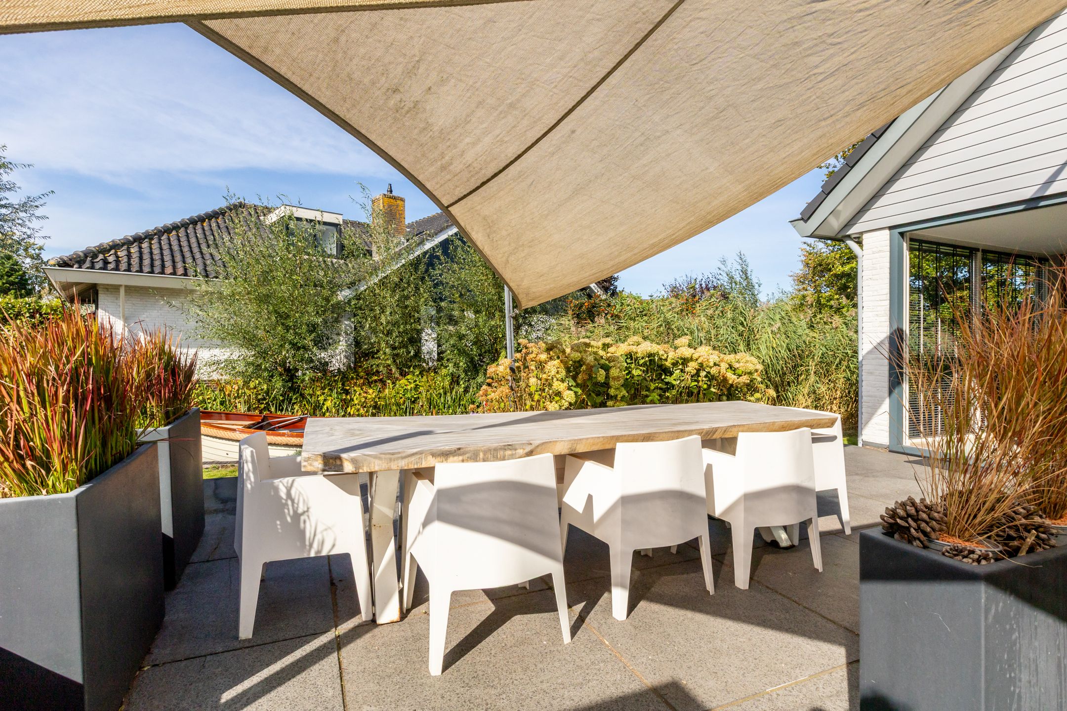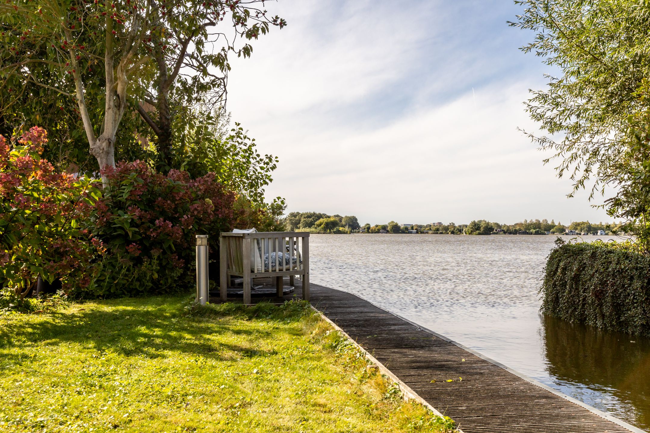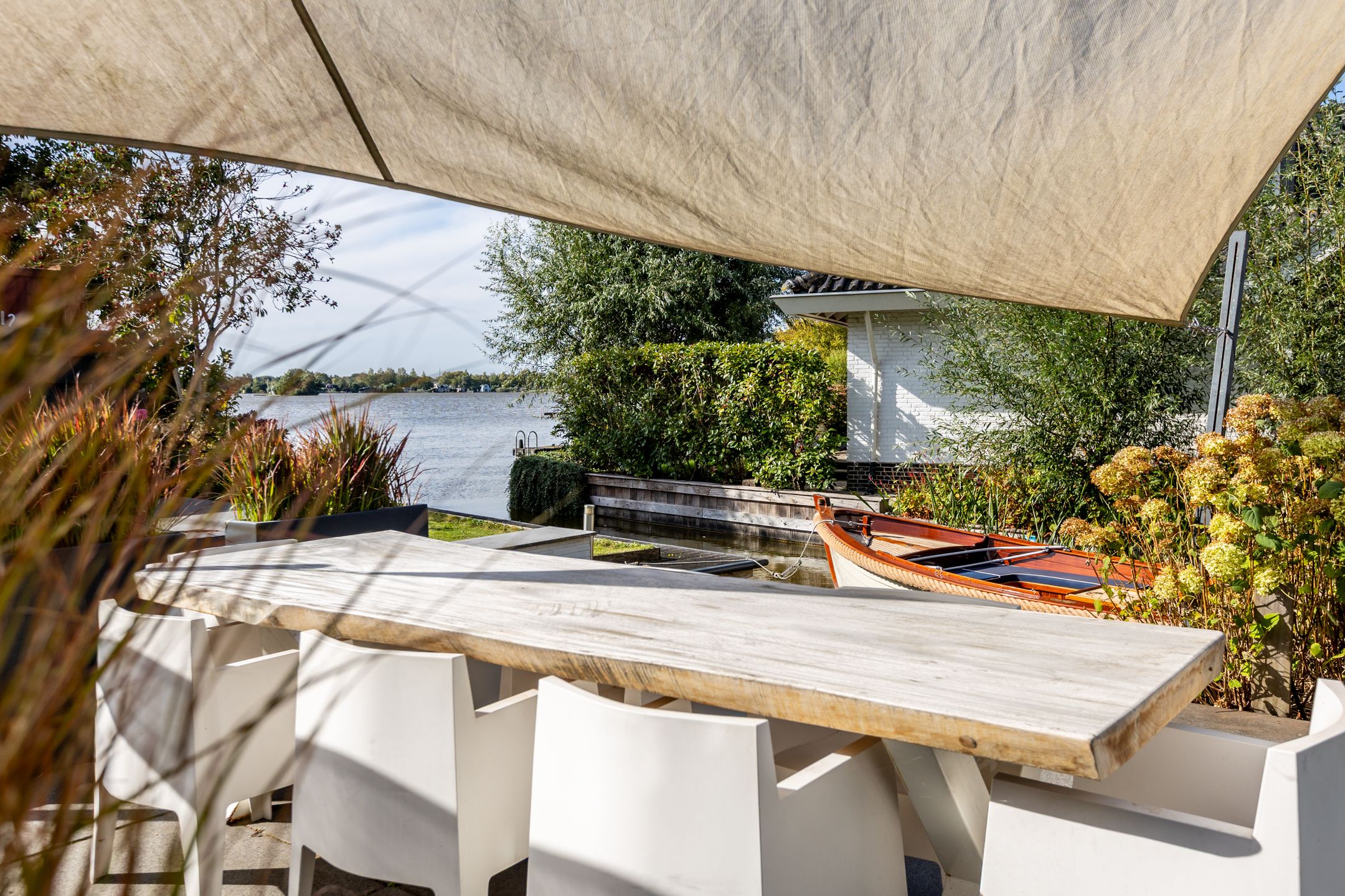 Op een unieke plek in Reeuwijk, aan de s-Gravenbroekseweg staat deze vrijstaande woning met een fraai aangelegde tuin rondom, royale parkeergelegenheid op eigen terrein en een inpandig bereikbare garage. Hier geniet u van het echte buitenleven: zwemmen vanuit uw eigen tuin, ontspannen op het ruime terras of varen vanaf uw eigen havenligplaats. De zonnige achtertuin met zuidwest-ligging biedt een schitterend uitzicht over de plas, volop privacy en meerdere plekken om te genieten van zon en water. Vanaf de voorzijde is er prachtig uitzicht op het weilandslagenlandschap met koeien, schapen en weidevogels. Binnen beschikt de woning over drie ruime slaapkamers (met mogelijkheid tot een vierde), lichte leefruimtes en praktische extras zoals een houten berging en garage. Bijzonderheden: - Vrijstaande woning; - Heerlijke tuin aan de s Gravenbroekseplas; - Ruime parkeergelegenheid op eigen terrein; - Inpandig bereikbare garage; - Houten berging; - Aan vaarwater, direct zwemmogelijkheid vanuit je tuin; - Royaal onderheid terras; - 3 ruime slaapkamers, 4e slaapkamer mogelijkheid; - Studeerkamer op de begane grond; - Dakpannen en goten vernieuwd (2025); - Woning v.v. HR++ beglazing (2024); - Aluminium schuifpui (woonkamer) met triple glas (2023); - CV-ketel HR (bouwjaar 2000, in 2023 gereviseerd en nieuwe brander geplaatst); - Houthaard (Barbas); - 2 zonnepanelen gelegen op dak van de berging; - Elektrisch bedienbare zonwering aan de zijkant van de woning op het zuidwesten; - Schilderwerk houten kozijnen 2024; - Alarmsysteem met bewakingscamera's voor en achter aanwezig in de woning; - (vergunningsvrije) uitbouw mogelijkheden aan zijkant en achterkant van de woonkamerwoning; - Winkelcentrum de Miereakker bevindt zich op 5 minuten loopafstand. Indeling: Begane grond: Ruime entree met garderobe, meterkast (12 groepen, krachtstroom en dubbele kookgroep) en een modern toilet met Italiaans sanitair, wastafel en volledig betegelde afwerking. De trapopgang is uitgevoerd in hout (zwart geverfd) en er is inpandig toegang tot de garage. De garage beschikt over een garagedeur aan de voorzijde en een loopdeur naar de achtertuin, aansluitingen voor wasapparatuur, verwarming, water, elektra, tegelvloer en een praktische gootsteen. Via de glazen deur bereikt u vanuit de hal, de woonkamer en keuken. De lichte en sfeervolle woonkamer is uitgerust met een moderne inbouw houthaard (Barbas, 2023) en biedt een schitterend uitzicht op zowel de tuin als de s-Gravenbroekseplas. De wanden en het plafond zijn strak afgewerkt met glad stucwerk en de aluminium schuifpui met triple glas zorgt voor extra licht en isolatie. Aan de voorzijde bevindt zich een ruime studeerkamer met vaste kastenwand. De open woonkeuken ligt eveneens aan de voorzijde en is uitgerust met een kastenwand met o.a. Siemens inbouwapparatuur (koffiemachine, oven, koel-vriescombinatie) en een apothekerskast. Het kook-spoeleiland heeft een Volkern werkblad, spoelbak, 4-pits keramische kookplaat, rvs-afzuigkap, vaatwasser en royale softclose laden. Vanuit de keuken en de studeerkamer is er fraai uitzicht over de polder aan de voorzijde. De entree, keuken, woonkamer en studeerkamer zijn voorzien van een PVC vloer in vergrijsd eikenlook met vloerverwarming (2016). Eerste verdieping: Overloop met toegang tot het separate toilet in dezelfde stijl als beneden (Italiaans sanitair, fontein, volledig betegeld). Slaapkamer 1 (voorzijde): royale kamer met extra diepe schuifwandkast en vaste kast met cv-opstelling (Nefit, 2000). Slaapkamer 2 (achterzijde): ruime kamer met deur naar het balkon (houten hekwerk met glas). Deze kamer kan worden gesplitst om een extra kamer te creren en beschikt over een vaste wandhangkast. Masterbedroom: royale slaapkamer met hoge nok en diepe schuifwandkast. De luxe badkamer met dakkapel is voorzien van een inloopdouche met glazen wand en sunshower, een design wastafelmeubel (Detremmerie, Belgisch design) met dubbele kom, dubbele kraan en softclose laden, een spiegelkast met verlichting en verwarming (beiden 2023), luxe tegelafwerking (hoogglans zwart gecombineerd met wit) en een elektrische designradiator. Perceel: De fraai aangelegde tuin ligt rondom de woning. De voortuin is in 2021 vernieuwd en voorzien van grindmatten met grind en ruime parkeergelegenheid voor 4 tot 5 autos op eigen terrein. Aan de waterzijde biedt een rietkraag extra beschutting. De zonnige achtertuin op het zuidwesten grenst direct aan de s-Gravenbroekseplas en beschikt over een eigen steiger en havenligplaats. Hier is directe zwemgelegenheid vanuit de tuin. Het royale onderheide terras biedt volop plek om te ontspannen. Daarnaast is er een houten berging met elektra en een jacuzzi. Deze prachtige vrijstaande woning aan de 's Gravenbroekseplas kopen? Neem uw eigen NVM makelaar mee!