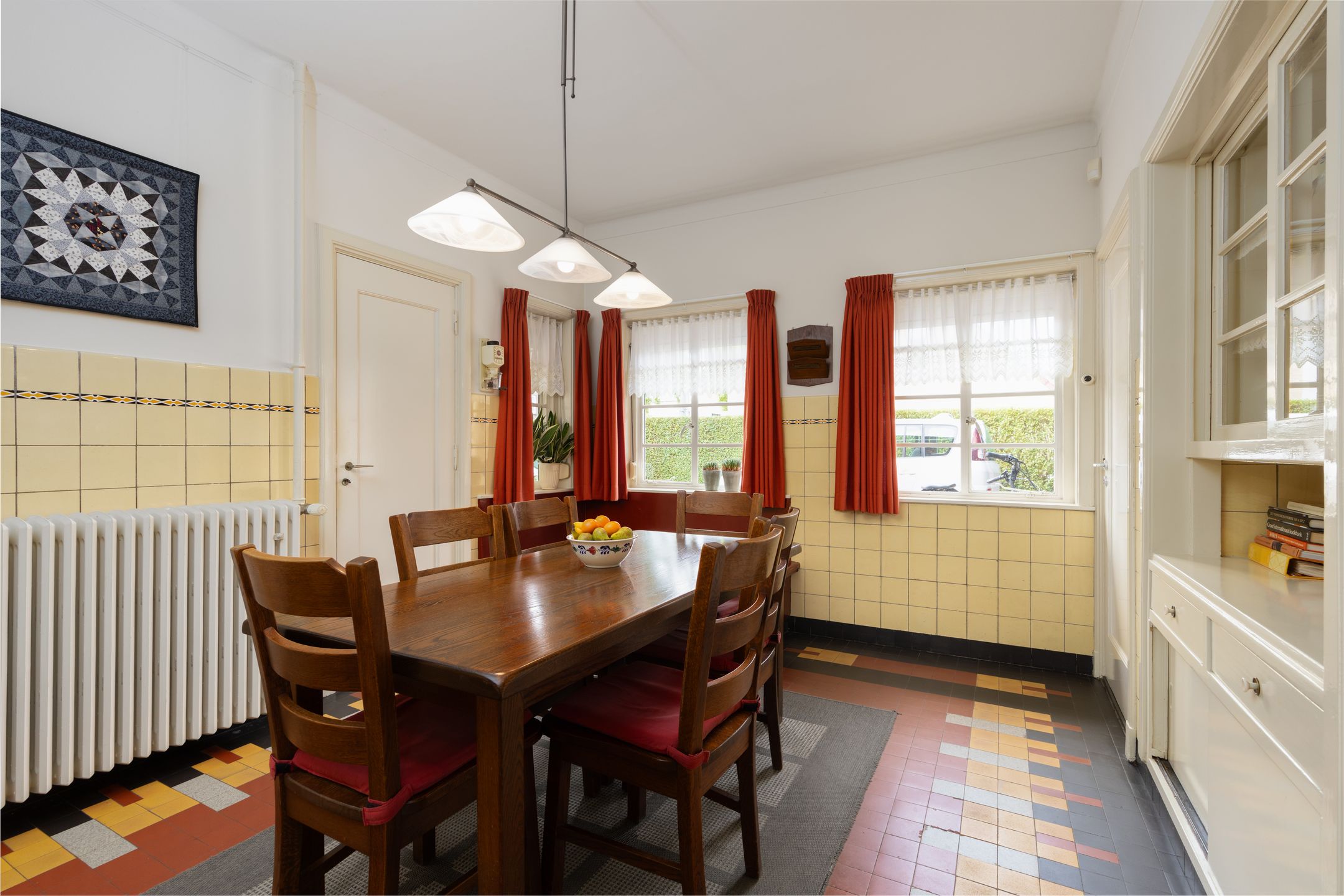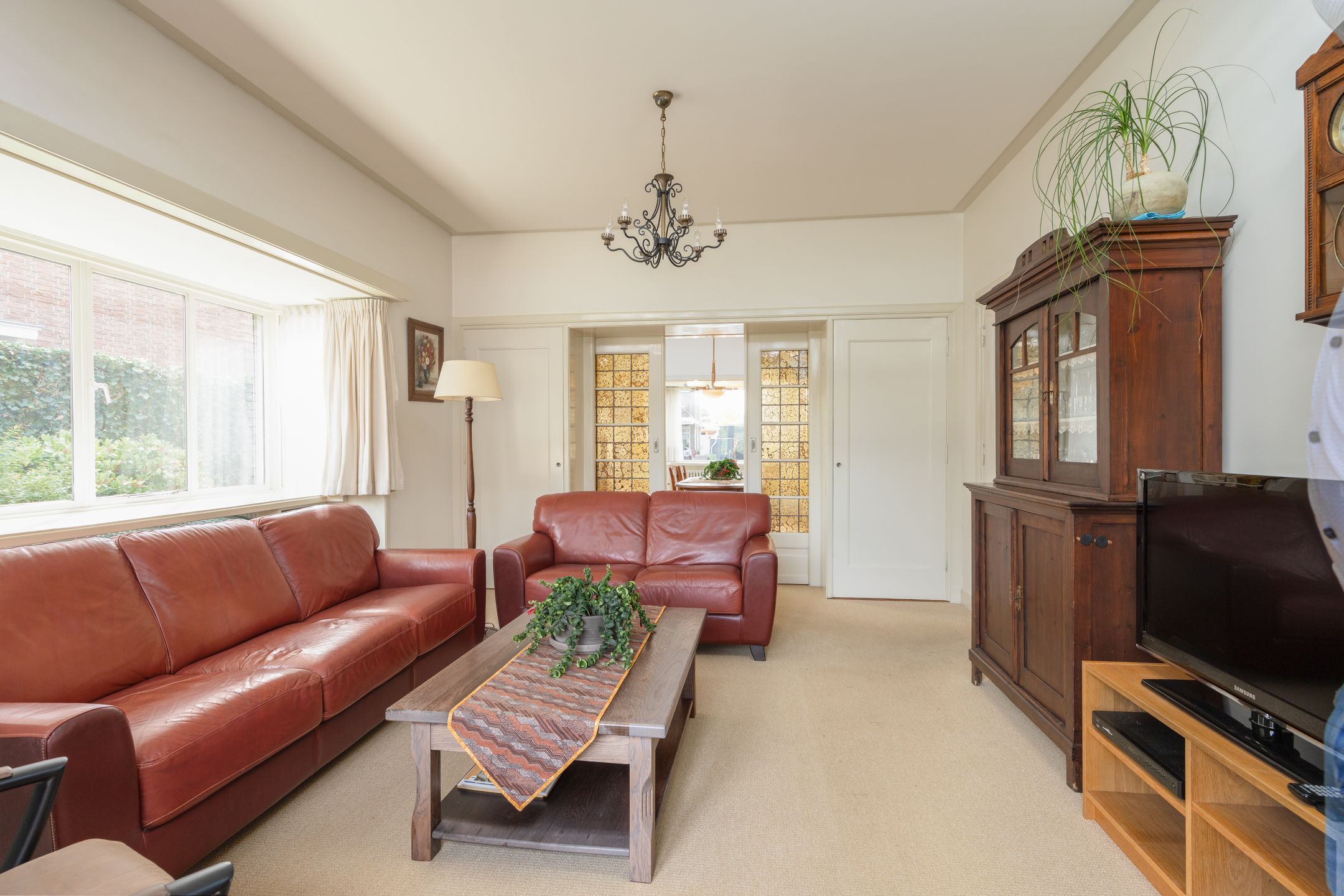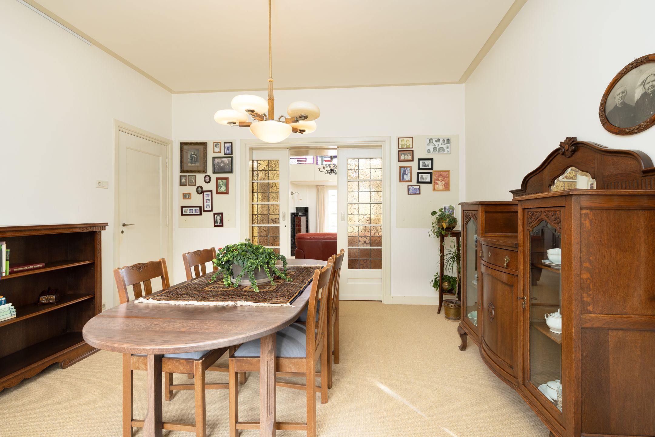 Dit bijzondere herenhuis in het hart van Boxtel ademt sfeer en historie. Het werd ontworpen door de gerenommeerde architect Ruts en veel van de originele elementen zijn nog altijd zichtbaar. Denk aan het glas-in-lood, houtsnijwerk, paneeldeuren, de stijlvolle trapopgang en de kenmerkende tegelvloeren stuk voor stuk details die bijdragen aan de unieke uitstraling van dit huis. Tegelijkertijd profiteer je van modern wooncomfort dankzij onder meer spouwmuurisolatie, gedeeltelijke vloerverwarming en 10 zonnepanelen. Begane grond De entree is indrukwekkend: een statige voordeur met glas-in-lood ramen, een originele tegelvloer n een karakteristieke paraplubak zetten meteen de toon. Vanuit deze entree biedt een taatsdeur met bijzonder glas in lood toegang tot de ruime hal. Ook is er een directe toegang tot een werkkamer aan de voorzijde van de woning welke is voorzien van een hoog plafond met sierlijst, vaste kast en mooi hoekraam met rolluik en zicht op de straat. Vanuit de hal met trapopgang zijn o.a. de originele toiletruimte met staand closet en fonteintje alsmede de sfeervolle woonkamer en-suite bereikbaar. De voorkamer, met erker en houten vloer, heeft deels elektrische en deels handmatig bedienbare rolluiken. Middels de originele en-suite schuifdeuren, met aan beide zijde een vaste kast, staat de voorkamer in verbinding met de achterkamer. Hier zorgen een erker, lichtstraat met glas-in-lood ramen en openslaande tuindeuren voor een lichte en warme sfeer. De oude decoratieve schouw met tegels versterkt het authentieke karakter. De ruime keuken is ingericht met een hoekopstelling en voorzien van diverse inbouwapparatuur zoals een inductie kookplaat, afzuigkap, koelkast en een vaatwasser. Een terrazzo blad, de originele servieskast en de kenmerkende tegeltjes op vloer en wanden maken het een bijzonder geheel. De kelder op stahoogte met tegelvloer en koekoek biedt volop bergruimte. Via een portaal met achterom en uitgebreide meterkast kom je in de bijkeuken. Deze royale ruimte is o.a. voorzien van een tegelvloer, keukenblok met warm en koud water, aansluitingen voor de wasapparatuur, vaste bergkast en deur naar de tuin. Verder is er een tweede toiletruimte en heb je via een vaste trap (af te sluiten middels luik) toegang tot een ruime open verdieping met opstelling van de cv-combiketel en omvormer van de zonnepanelen. Vanuit de bijkeuken is er toegang tot het in 2004 aangebouwde deel. Dit deel van de woning biedt volop mogelijkheden met onder meer een separate entree, kantoorruimte, hobbykamer en een riante verwarmde garage met openslaande deuren naar de oprit. Alle ruimtes zijn hier voorzien van vloerverwarming, dak- en spouwmuurisolatie, en dus uitstekend bruikbaar als praktijkruimte of kantoor aan huis. Eerste verdieping De imposante trapopgang met glas-in-lood ramen en houtsnijwerk is een absolute blikvanger. Vanuit de overloop, met vaste kast, heb je toegang tot drie slaapkamers, de afgesloten trapopgang en de badkamer. Twee kamers zijn gelegen aan de voorzijde van de woning en beschikken beide over inbouwkasten en originele paneeldeuren. De ruime slaapkamer aan de achterzijde heeft openslaande deuren naar een iets verlaagd balkon welke zijn voorzien van een elektrisch rolluik. De badkamer combineert authentieke details met comfort en is ingericht met een ligbad, inloopdouche, wastafel en wandcloset. Tweede verdieping De tweede verdieping verrast met de hoge nok en zichtbare spanten. Dankzij de dakkapellen aan de voor- en achterzijde en de bergruimte achter de schotten is dit een volwaardige verdieping met veel mogelijkheden. Buitenruimte De achtertuin is grotendeels bestraat en voorzien van meerdere terrassen, borders en een overkapt terras. Onder de oppervlakte is er een originele regenwateropslag aanwezig waardoor je via een pomp water kunt gebruiken voor bijvoorbeeld het sproeien van de beplanting. Aan de voorzijde vind je een ruime oprit met plaats voor meerdere autos en een verzorgd aangelegde tuin met hagen en planten. Via een pad met poort naast de woning is er een achterom. Bijzonderheden Ontworpen door architect Frans Ruts, waarbij veel originele details nog aanwezig zijn Royale en multifunctionele aanbouw met kantoor, hobbyruimte en verwarmde garage Gehele spouwmuur- en dakisolatie toegepast. Vloerverwarming in de aanbouw 10 zonnepanelen aanwezig Glas-in-loodramen, houtsnijwerk, originele paneeldeuren en kenmerkende tegels Ideaal voor kantoor of praktijk aan huis Ligging in hartje centrum met alle voorzieningen in de directe omgeving Gebruiksoppervlakte wonen: ca. 262m2 Inhoud: ca. 1115m Perceelsoppervlakte: 540m2