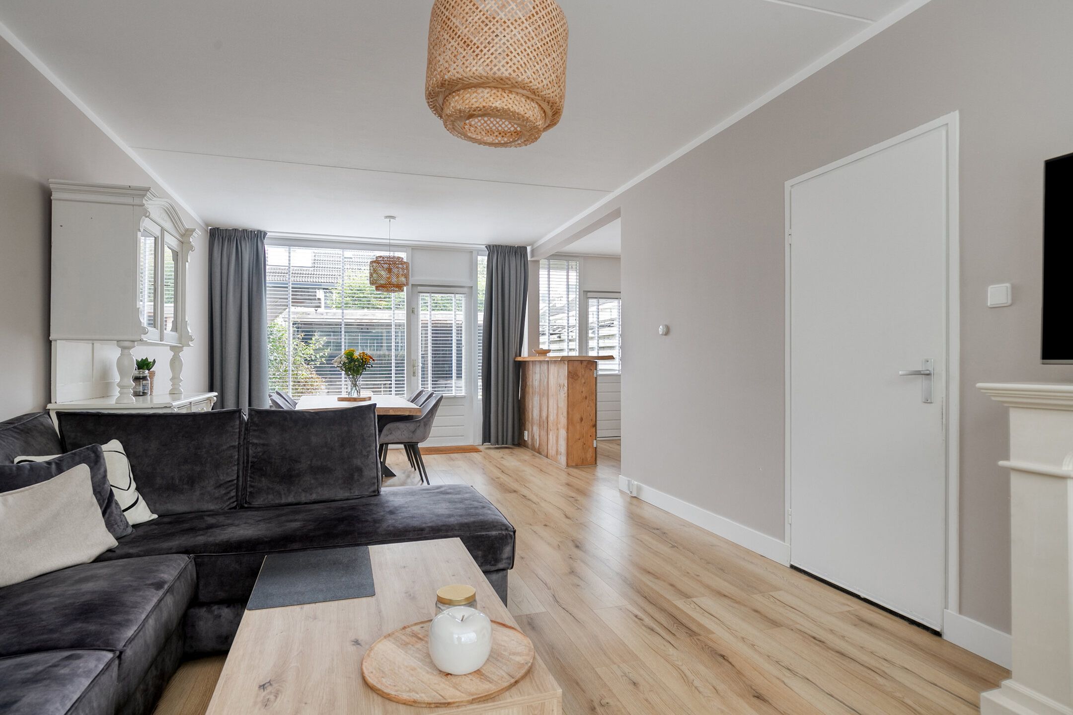 Op een aantrekkelijke, centrale locatie nabij het winkelcentrum en het NS-station van Dronten, ligt deze ruime tussenwoning met uitzicht op openbaar groen. De woning is in januari 2022 grondig opgeknapt en combineert modern comfort met een praktische indeling. De fraai aangelegde achtertuin is gelegen op het oosten en beschikt over een heerlijke overkapping, een vrijstaande berging en een achterom. Scholen, het gezellige centrum van Dronten en het treinstation bevinden zich op korte afstand. De gestelde vraagprijs betreft een "bieden vanaf prijs", biedingen vanaf 355.000,- k.k. zullen door verkoper in behandeling genomen worden. Indeling Begane grond: Entree, hal met meterkast, garderobe, modern toilet, trapopgang naar de eerste verdieping en toegang tot de woonkamer. De straatgerichte woonkamer is voorzien van glad gestucte wanden en een mooie laminaatvloer. De keuken, gelegen aan de tuinzijde, is uitgerust met een 4-pits gaskookplaat, oven, magnetron, koelkast en vaatwasser. Eerste verdieping: Overloop met drie ruime slaapkamers, een modern uitgeruste badkamer en een apart toilet. De hoofdslaapkamer en de slaapkamer aan de achterzijde hebben toegang tot walk-in-closets met loftdeuren. De andere slaapkamer aan de achterzijde beschikt over een eigen balkon. De badkamer is voorzien van een ruime inloopdouche, een badmeubel met dubbele wastafel en elektrische vloerverwarming. Tweede verdieping: Via een vaste trap bereikt u de tweede verdieping waar een vierde slaapkamer is gecreerd. Op de voorzolder bevinden zich de c.v.-opstelling (eigendom, uit 2023) en de aansluitingen voor de wasmachine en droger. Tuin De zonnige achtertuin, gelegen op het oosten, biedt volop privacy en beschikt over een royale overkapping, sierbestrating, een berging en een achterom. Dankzij de ligging is het de ideale plek om van de zon en goed gezelschap te genieten. Duurzaamheid Op het dak van de woning zijn 8 zonnepanelen geplaatst (huur), waarmee u energiekosten kunt verlagen en bijdraagt aan een duurzame woonomgeving. BIJZONDERHEDEN * Bouwjaar: 1969 * Perceeloppervlakte: 175 m2 * Vloeren voorzien van laminaat (2022) * Gestucte wanden * Moderne badkamer met elektrische vloerverwarming * C.V.-ketel 2023 * 8 zonnepanelen (huur) 2023 * Zonnige privacy biedende achtertuin op het oosten met overkapping en berging * Op loopafstand van het NS-station en het centrum van Dronten * Aanvaarding in overleg * Verplichting tot zelfbewoning * Bij verkoop wordt gebruikgemaakt van het VBO koopakte model 2023, inclusief ouderdoms- en asbestclausule. Benieuwd naar deze moderne, goed afgewerkte tussenwoning? Plan een bezichtiging en ontdek zelf het comfort en de ruimte die deze woning te bieden heeft! Het verkoopproces verloopt in zijn geheel via MOVE.nl en daarmee ook het biedingsproces. Biedingen dienen via MOVE te worden ingediend. U ontvangt op het moment dat u een afspraak voor bezichtiging maakt, inloggegevens voor een MOVE account. Via dat account kunt u alle benodigde informatie en documenten inzien en, indien gewenst, een bod uitbrengen.