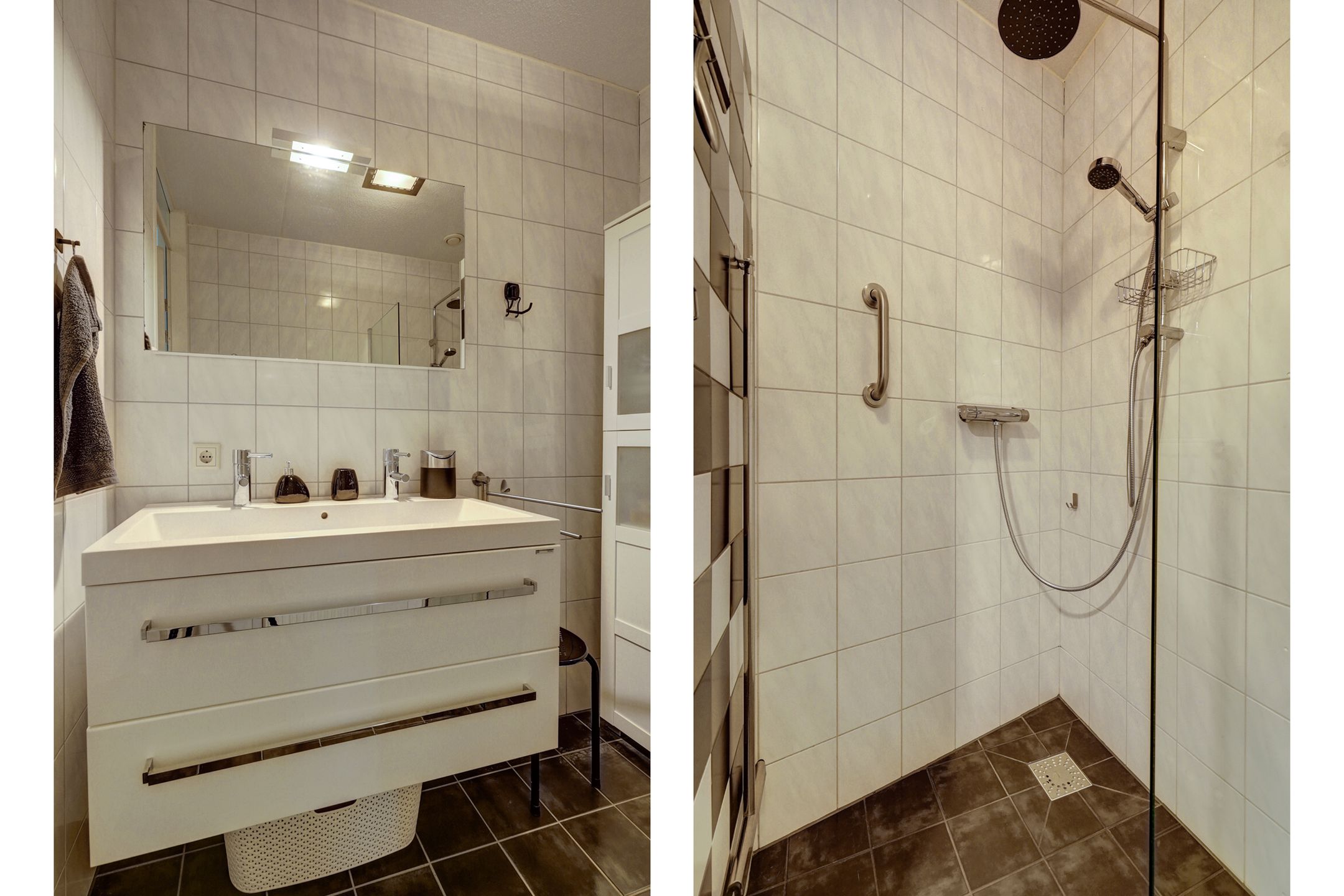 | Wyposażenie łazienki | Dubbele wastafel, inloopdouche, en wastafelmeubel |