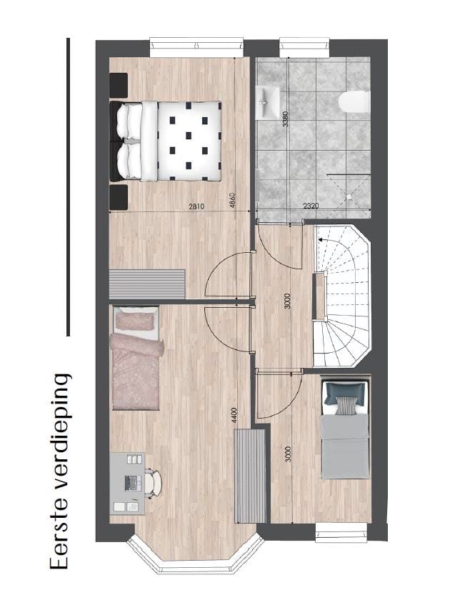 Charmante eengezinswoning met karakteristieke erker Deze sfeervolle eengezinswoning onderscheidt zich door de elegante erker op de eerste verdieping, die niet alleen zorgt voor extra ruimte, maar ook een charmante uitstraling geeft aan de gevel. De klassieke details in de afwerking vormen een subtiele knipoog naar de historische architectuur van Vlissingen, terwijl het moderne comfort en de praktische indeling zorgen voor een prettige woonomgeving. Indeling type 3 Begane grond: licht en open De hal biedt toegang tot de meterkast, het toilet en de trapopgang naar de bovenverdiepingen. Vervolgens stap je de royale leefruimte binnen, waar de open verbinding tussen de keuken en de woonkamer zorgt voor een heerlijk ruimtelijk gevoel. De keuken biedt volop mogelijkheden voor een ruime hoekopstelling en is een fijne plek om samen te koken en te genieten. De woonkamer, met grote openslaande deuren naar de achtertuin, wordt overspoeld met natuurlijk licht. De handige trapkast biedt extra bergruimte voor voorraad of kinderspeelgoed, waardoor alles netjes en georganiseerd blijft. Eerste verdieping: stijlvol en praktisch Op de eerste verdieping vind je 3 slaapkamers. De grote slaapkamer aan de voorzijde is voorzien van een prachtige erker, die niet alleen extra ruimte biedt, maar ook een sfeervolle uitstraling heeft. De moderne badkamer is voorzien van een inloopdouche, een wastafel en een tweede toilet, uitgevoerd met hoogwaardige materialen voor optimaal comfort. Tweede verdieping: veelzijdige zolderruimte De tweede verdieping verrast met nog meer ruimte. Hier vind je twee ruime slaapkamers en een aparte technische ruimte met aansluitingen voor de wasmachine en droger. Dankzij de slimme indeling voelt deze verdieping extra ruim aan. De grote ramen zorgen voor een fijne lichtinval, waardoor het een prettige plek is om te verblijven.