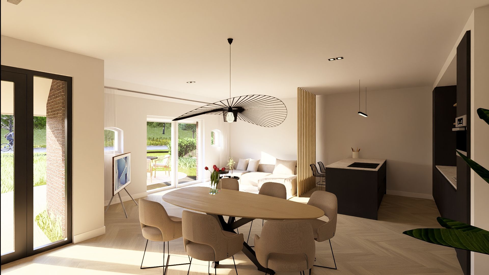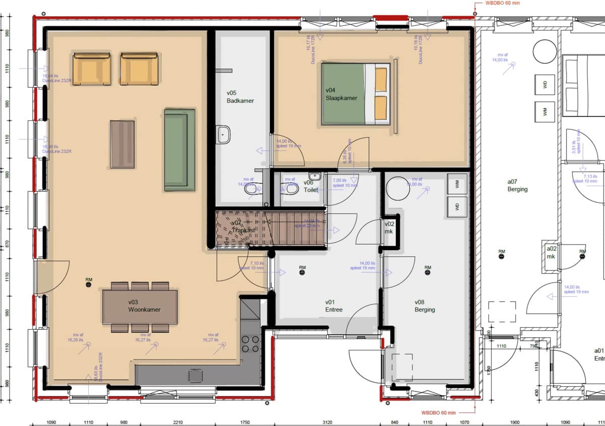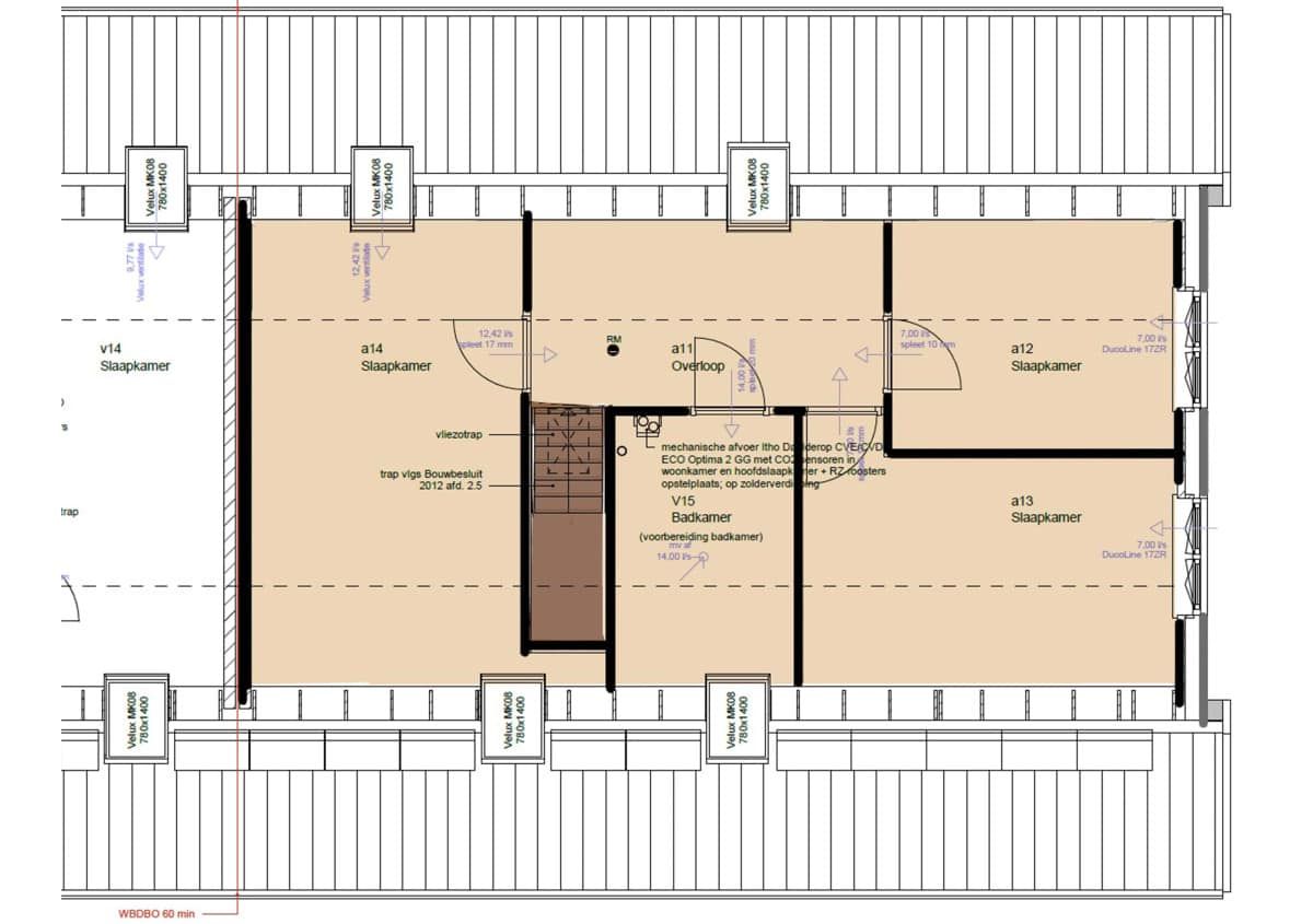 | Wyposażenie | Balansventilatie, dakraam, mechanische ventilatie, schuifpui, TV kabel, zonnecollectoren, en zonnepanelen |