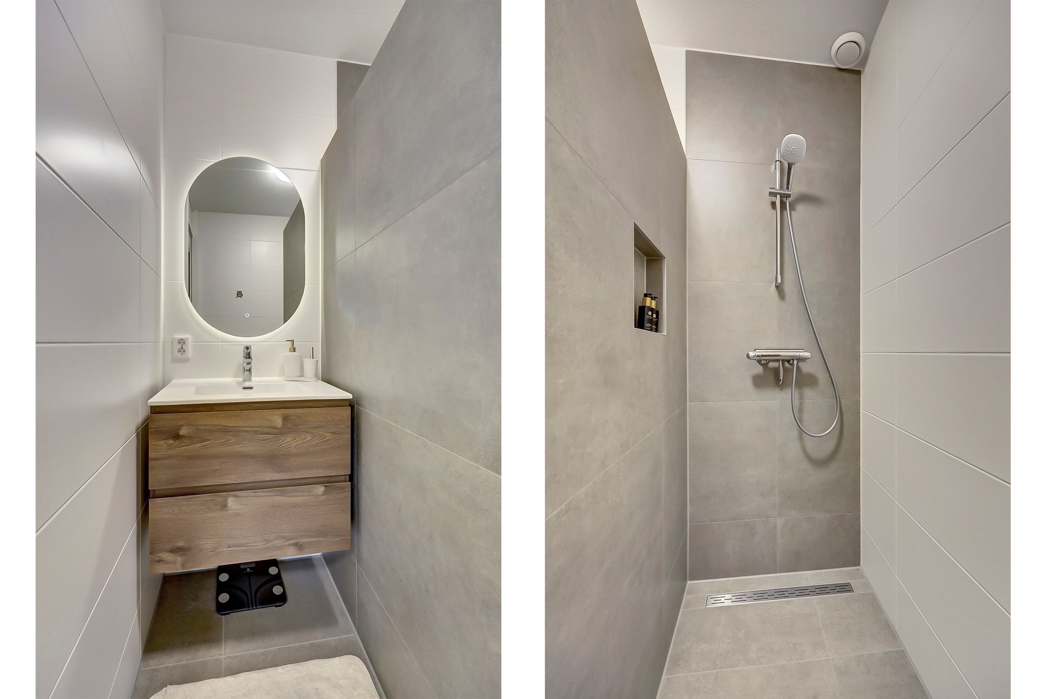 | Wyposażenie łazienki | Inloopdouche, vloerverwarming, en wastafelmeubel |