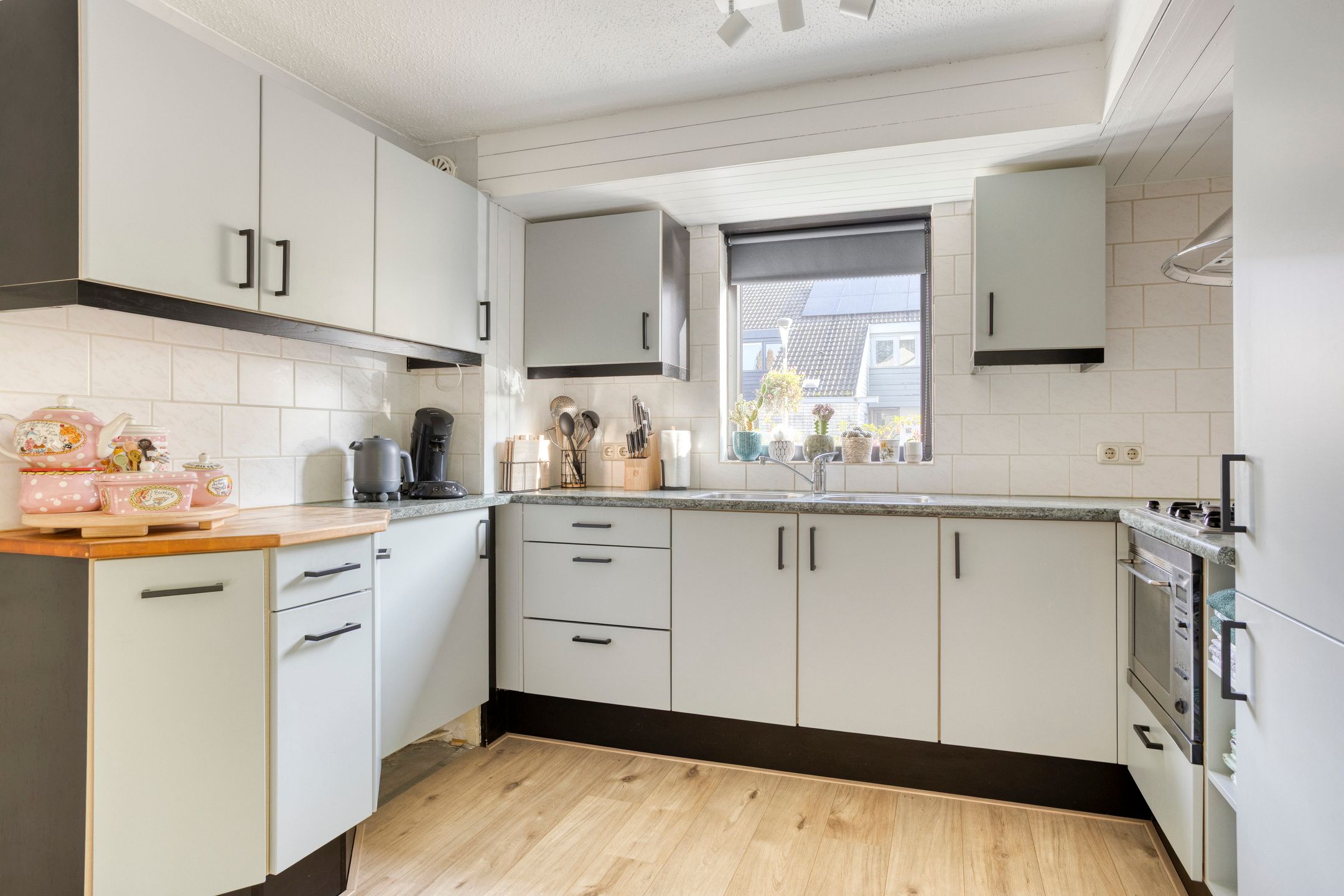 Let op: genoemde prijs betreft een bieden vanaf prijs Bekijk nu deze instapklare, speelse en ruime hoekwoning! Deze keurig onderhouden woning is zowel van binnen als buiten verzorgd en verduurzaamd. Zo is in 2021 alle beglazing vervangen door HR++ glas, zijn de spouwmuren na-gesoleerd en is in 2022 al het schilderwerk uitgevoerd. De woning heeft een speelse indeling op de begane grond, vier slaapkamers op de eerste verdieping en een ruime zolder die bereikbaar is via een vaste trap. Daarbij ligt deze woning ook nog eens op korte afstand van het centrum van Dronten! Indeling Begane grond: Parkeer je auto gemakkelijk op de eigen oprit en betreed de woning via de voordeur of de berging. Via de hal heb je toegang tot de berging, de living en de toiletruimte. De toiletruimte is volledig betegeld met witte en zwarte tegels en is voorzien van een zwevend toilet, fonteintje en een radiator. In de berging tref je een riante verdiepingsvloer voor extra opslag, de wasmachineaansluiting met ombouwkast, de vaatwasser (ter overname) en de meterkast. Stap de living binnen en je komt eerst in de keuken met aansluitend de eethoek. De keuken is heerlijk licht door het aanwezige raam, waar vanuit je zicht hebt op de zij-tuin. De keuken is uitgevoerd in een praktische U-opstelling en beschikt over een gaskookplaat met afzuigschouw, koelkast, dubbele spoelbak en veel opbergruimte. De speelse indeling maakt deze woning uniek; zo kijk je vanuit de keuken niet alleen naar de eethoek, maar ook richting de zitkuil, dat zorgt voor een verrassende en ruimtelijke sfeer. De eethoek is royaal van formaat, met voldoende ruimte voor een zespersoons eettafel. Dankzij het grote raam aan de voorzijde is het hier heerlijk licht. Twee treden lager bevindt zich de zithoek, waar de open haard zorgt voor extra sfeer en warmte in de wintermaanden. Dankzij de grote ramen en de loopdeur naar de tuin geniet je hier van veel licht en een fijne verbinding met buiten. Slim detail: de beglazing aan de achterzijde is zonwerend, wat ideaal is bij de zuidelijke ligging van de tuin. De gehele begane grond is voorzien van eenzelfde laminaatvloer, wat zorgt voor een rustige uitstraling. 1e Verdieping: Vanaf de overloop heb je toegang tot vier ruime slaapkamers, de badkamer en de vaste trap naar de zolder. De slaapkamers zijn royaal van formaat en dankzij de hoge plafonds voelt alles extra ruim aan. Vanuit de slaapkamer aan de voorzijde bereik je zelfs het balkon. Op de 1e verdieping ligt eenzelfde laminaatvloer als op de benedenverdieping, wat zorgt voor een mooi geheel. De badkamer is volledig betegeld met witte wandtegels en zwarte vloertegels en is verder voorzien van een wastafelmeubel met spiegel, een toiletkast, een toilet, een douchecabine en een radiator. 2e Verdieping: Via de vaste trap bereik je de zolderverdieping. Hier tref je de cv-installatie, de mv-unit en een groot dakraam dat zorgt voor veel natuurlijk licht. Deze ruimte wordt momenteel gebruikt als bergruimte, maar biedt volop mogelijkheden voor het realiseren van een vijfde slaapkamer, hobbyruimte of kantoor. Tuin: Kom helemaal tot rust in de zonnige, op het zuiden gelegen tuin. De tuin is aangelegd met een mooie afwisseling van bestrating en beplanting. Aan de woningzijde bevindt zich een terras waar je heerlijk kunt genieten van de zon. Wordt het te warm? Dan biedt het elektrisch bedienbare zonnescherm uitkomst. Altijd al gedroomd van een riante overkapping? De ruimte leent zich er hier perfect voor om dat te realiseren. Aan de zijkant van de woning vind je een afsluitbare achterom die toegang geeft tot de later bijgekochte zij-tuin. Dit zorgt niet alleen voor extra ruimte, maar ook voor meer privacy! Bijzonderheden: * Deze woning heeft energielabel C * Aanvaarding in overleg * Speelse woning * Vier slaapkamers met de mogelijkheid tot een vijfde * Tuin op het zuiden * Alle beglazing vernieuwd in 2021+ spouwmuur gesoleerd * Verkopende makelaar: De Makelaars van 5VOOR12 of neem je eigen NVM aankoopmakelaar mee!