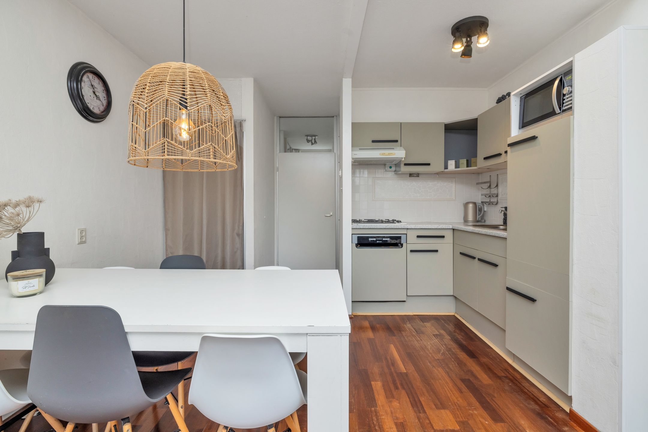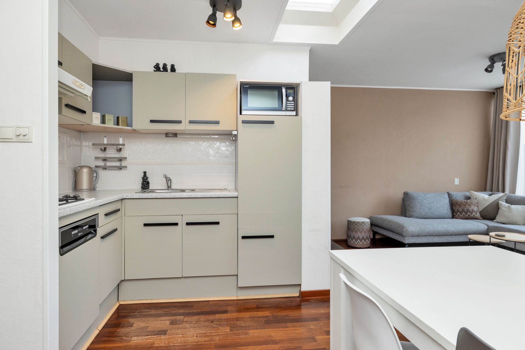 De Buiskap 11 Dronten De bezichtigingsdagen zijn geweest, er worden voor nu geen nieuwe bezichtigingen meer gepland. Let op: dit is een bieden vanaf-prijs. In de rustige, groene wijk De Boeg in Dronten-Zuid staat deze tussenwoning. Dankzij de slaap- n badkamer op de begane grond is de woning volledig levensloopbestendig. De achtertuin grenst direct aan de parkeerplaats, waardoor je veel vrijheid en privacy ervaart. Het winkel- en gezondheidscentrum van Dronten-Zuid liggen op korte afstand ideaal voor dagelijkse voorzieningen. Indeling Begane grond Je komt binnen in de hal met garderobe, meterkast, toilet en trapopgang naar de eerste verdieping. Vanuit de hal bereik je de slaapkamer op de begane grond en de aangrenzende badkamer. De badkamer is uitgerust met een ruime douche met bad, een wastafelmeubel met spiegelkast. Daarna stap je de lichte woonkamer in. Dankzij de grote glazen pui met achterdeur sta je zo in de tuin. De sfeervolle houten vloer geeft de ruimte een warme uitstraling. De open, moderne keuken is extra licht door de dakkoepel en voorzien van een koel-vriescombinatie, combi magnetron, vaatwasser, gaskookplaat en afzuigkap. De trapkast biedt praktische opbergruimte. Eerste verdieping De overloop en ruime slaapkamer hebben grote ramen die zorgen voor een prachtig vrij uitzicht over het groen. De verdieping beschikt over extra bergruimte en is afgewerkt met laminaat. Hier vind je ook de Nefit cv-ketel (2025). Tuin Aan de voorzijde ligt een onderhoudsvriendelijke voortuin met stenen berging. De achtertuin ligt vrij op het oosten en grenst aan een openbare parkeerplaats, waardoor je geniet van optimale privacy. De tuin is ingericht met straatwerk, beplanting en een houten berging voor extra opslag. Bijzonderheden Bouwjaar 1974 Bad- en slaapkamer op de begane grond Nieuwe Nefit cv-ketel (2025) Vrije ligging aan de achterzijde Voorzieningen en openbaar vervoer op korte afstand Deze informatie is met zorg samengesteld; aan de inhoud kunnen geen rechten worden ontleend. Alle maten en oppervlakten zijn indicatief.