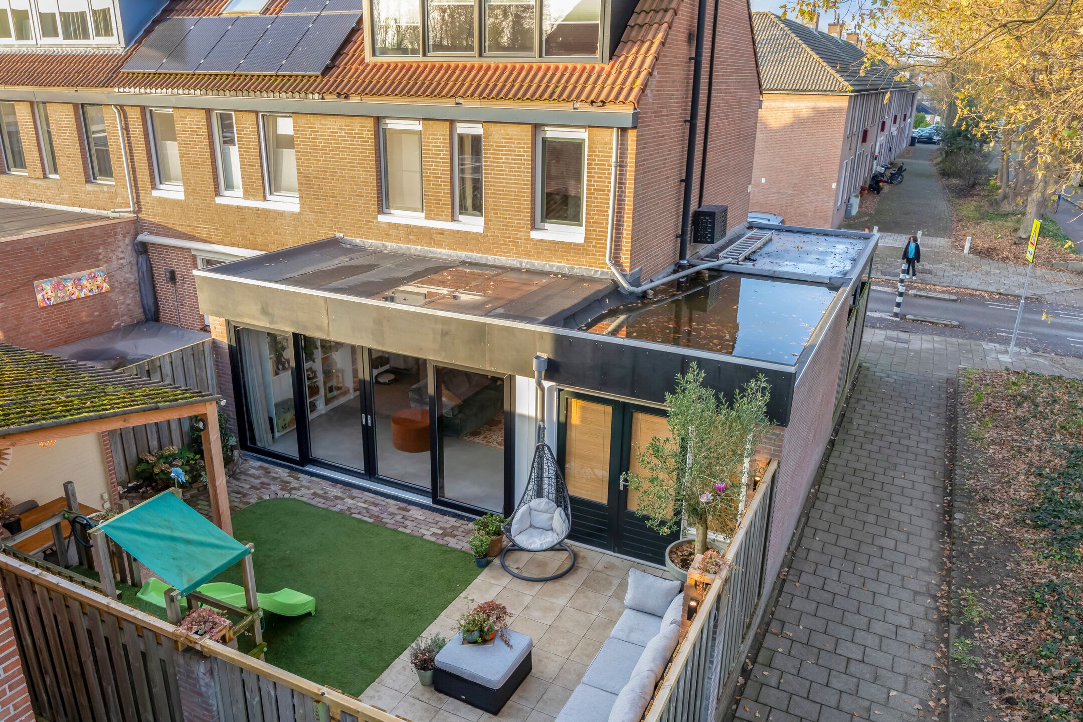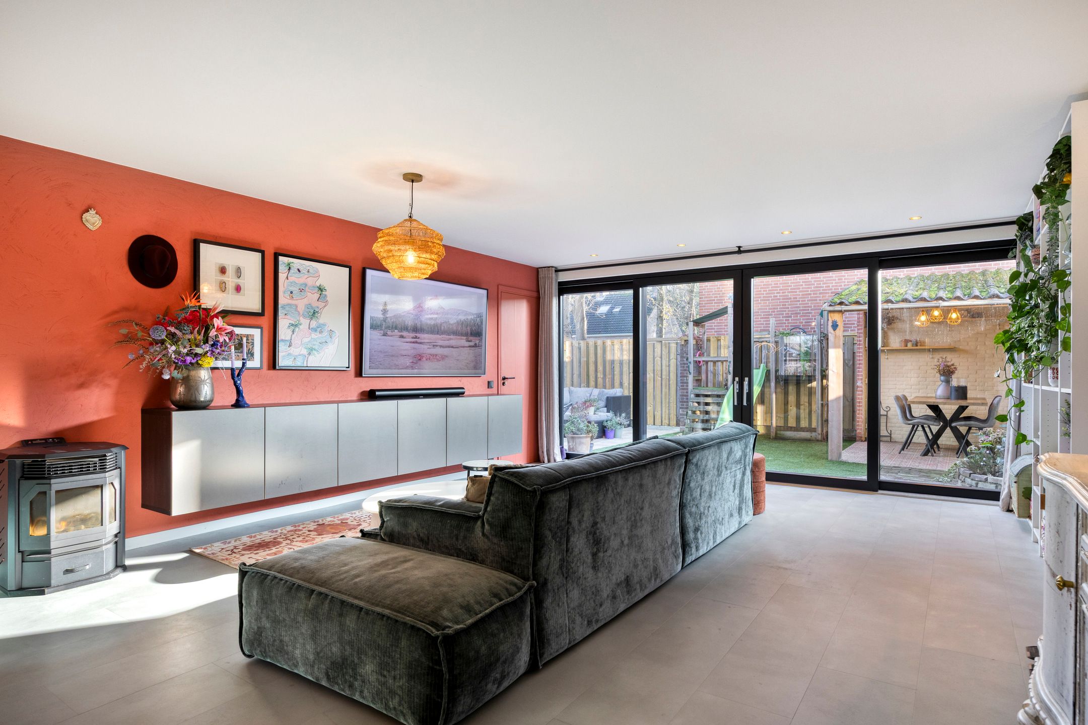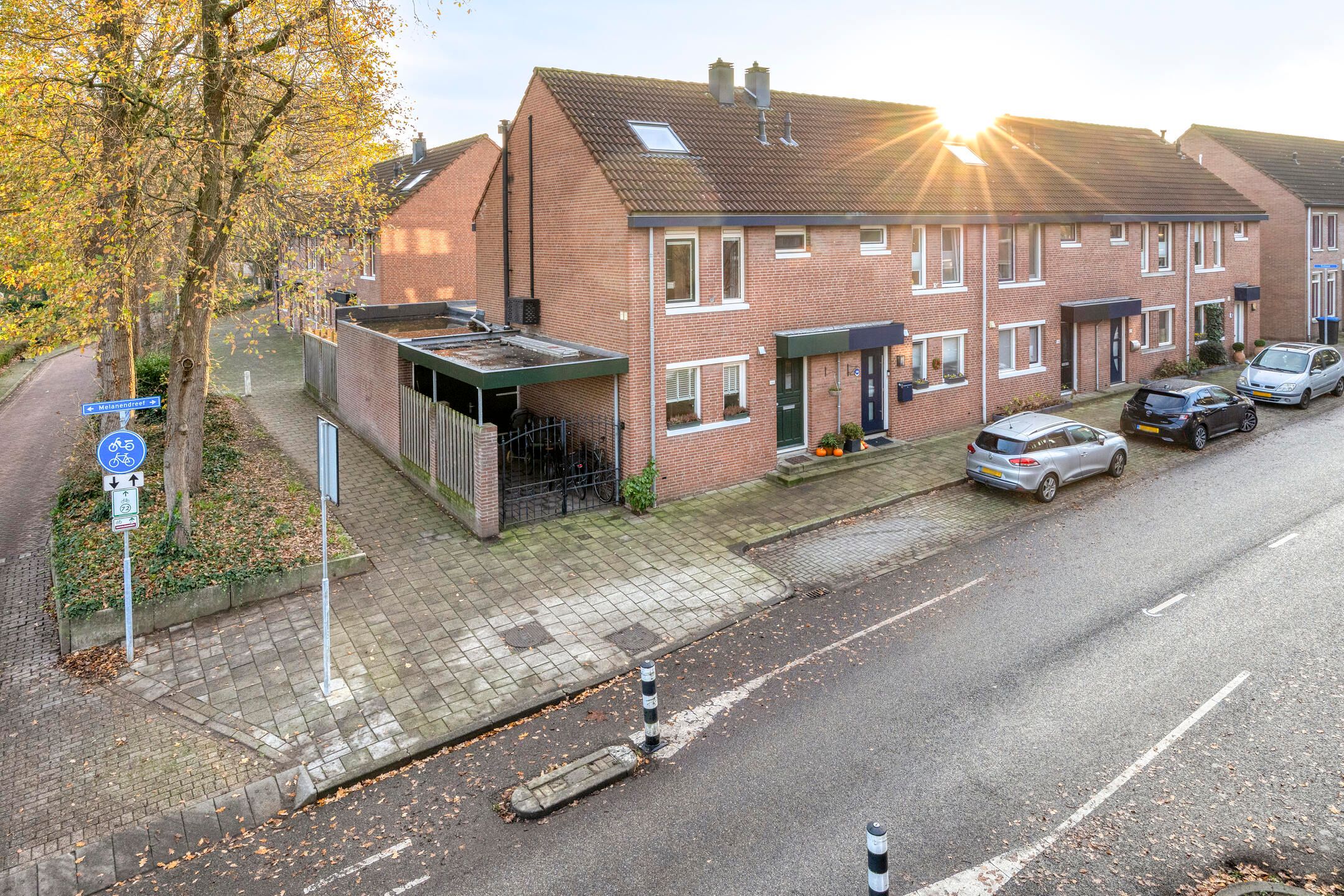 Aan de rand van de wijk Meilust bevindt zich deze hoekwoning met een hoogwaardige allure en een meer dan instapklare stijl. Het object ademt sfeer, warmte en biedt een heerlijke leefruimte voor een compleet (groeiend) gezin. De woonkamer is uitgebouwd over de volledige breedte aan de achterzijde waardoor een heerlijke leefruimte is ontstaan. Via de brede kunststof pui met veel lichtinval zijn de ruime woonkamer en de tuin perfect bij elkaar betrokken hetgeen een heerlijke gewaarwording biedt alwaar je optimaal van kunt genieten vanaf vroeg in het voorjaar tot laat in het najaar. De keuken bevindt zich aan de voorzijde en biedt alle gewenste inbouwapparatuur welke jij nodig hebt om heerlijke te kokkerellen. De tuin biedt een heerlijk zonnige plek, is gesitueerd op het Zuiden, kent een hoogwaardige aanleg en een achterom. Daarnaast is er een oprit en een ruime praktische garage met veel opbergruimte door de aansluitende carport. De garage is te betreden via de woonkamer, tuin en carport. Vanuit de achterpoort aan de tuin kijk je uit op het Meilustbos. De 1e verdieping biedt een 2-tal volwaardige 2-persoonskamers waarvan de achterste slaapkamer zelfs beschikt over een inloopkast. Indien gewenst is deze kamer relatief eenvoudig terug om te vormen naar de oorspronkelijke indeling waardoor in totaal 3 slaapkamers op de 1e verdieping aanwezig kunnen zijn. Uiteraard is ook de badkamer instapklaar van styling en vv. alle gemakken. Ter plaatse van de 2e verdieping waan je jezelf vervolgens in een ware hotelsuite vv. alle gewenste privacy met een berg aan ruimte, een airco-installatie en bovenal een badkamer en-suite vv. vrijstaand ligbad en een badkamermeubel. Een object om bij weg te dromen en dat alles in combinatie met 8 zonnepanelen en een groen energielabel B zodat ook de energielasten beperkt blijven. Heb jij een (te) groot wensenlijstje? In dat geval ben je aan de Melanendreef aan het juiste adres, want deze woning vinkt letterlijk alles hokjes aan! Ook zo enthousiast? Neem dan spoedig contact met ons op voor het inplannen van jouw priv rondleiding ter plaatse! INDELING: Begane grond: Halentree, wandafwerking stucwerk, PVC vloer, plafond afgewerkt met stucwerk; meterkast met 11 groepen, kookgroep en een aardlekschakelaars; betegeld toilet met een wandcloset en fonteintje; uitgebouwde woonkamer (ca. 49 m2 incl. keuken), voorzien van een pellethaard, TV-meubel vv. een niet zichtbaar, weggewerkt (verwarmd) kattenluik (d.m.v. elektrische vloerverwarming), deur naar garage, trap naar 1e verdieping, wandafwerking stucwerk, PVC vloer, plafond afgewerkt met stucwerk vv. inbouwspots, kunststof schuifpui naar tuinterras; open keuken aan de voorzijde waarin geplaatst een in U-vorm opgestelde inbouwkeuken, voorzien van een kunststof aanrechtblad met een spoelbak en kokend waterkraan, inbouw inductie kookplaat, -koelvriescombi, -combi ovenmagnetron, -vaatwasser en een afzuigkap, wandafwerking tegels en stucwerk, PVC vloer, plafond afgewerkt met stucwerk. 1e verdieping: Overloop met een vaste trap naar 2e verdieping, wandafwerking stucwerk, vloer afgewerkt met tapijt, plafond afgewerkt met stucwerk; slaapkamer achterzijde (ca. 17 m2 incl. inloopkast), mogelijk te splitsen in 2 slaapkamers, reeds voorzien van een inloopkast, wandafwerking stucwerk, vloer afgewerkt met tapijt, plafond afgewerkt met stucwerk; slaapkamer links voor (ca. 11 m2), wandafwerking stucwerk, vloer afgewerkt met tapijt, plafond afgewerkt met stucwerk; modern betegelde badkamer uit 2019 voorzien van een inloopdouche vv. thermosstaatkraan, 2e wandcloset, badkamermeubel met dubbele wastafel vv. verwarmde spiegel, mechanische ventilatie en een designradiator. 2e verdieping: Royale hoofdslaapkamer met een badkamer en-suite vv. vrijstaand ligbad en badkamermeubel, bergkasten onder het schuine dakvlak, een dakraam aan de voorzijde, dakkapel aan de achterzijde (2022), airconditioning en een CV-kast met opstelplaats HR-combiketel en omvormer zonnepanelen, wandafwerking stucwerk, laminaatvloer, schuine dakvlakken afgewerkt met stucwerk vv. balken. Bijgebouwen: Garage schuur met een dubbele deur naar oprit straat, separate loopdeur naar tuinterras achterzijde, vloer uitgevoerd in betontegels, vv. elektra en wasmachine-drogeraansluiting. Tuin: Aangelegde tuin, gesitueerd op het zonnige Zuiden, terras bestraat met sierbestrating, voorzien van kunstgazon, tuinverlichting, schuttingen en achteruitgang; Veranda voorzien van een betonvloer en golfplaten dak (asbestverdacht); Oprit met carport bestraat met sierbestrating voorzien van parkeergelegenheid voor ca. 1 auto. Bouwaard: Woonhuis: Traditioneel gebouwd in spouw, opgetrokken in metselbaksteen, begane grondvloer uitgevoerd in beton, verdiepingsvloeren uitgevoerd in beton, onderschoten kap gedekt met pannen en platdakconstructie gedekt met bitumineuze dakbedekking, kozijnen grotendeels uitgevoerd in kunststof. Isolatie & energie: De woning is voorzien van vloer-, spouwmuur- en dakisolatie alsmede van isolerende beglazing. Aanvullend is de woning voorzien van 8 zonnepanelen en een groen label B. Verwarming en warmwatervoorziening: De woning is voorzien van centrale verwarming. De HR-combiketel (fabricaat Vaillant, bouwjaar 2009) is geplaatst in de CV-kast op de 2e verdieping en voorziet tevens in warmwater. De begane grondvloer is voorzien van vloerverwarming als gevoed vanuit de CV en aanvullend is een airco-installatie aanwezig op de 2e verdieping.