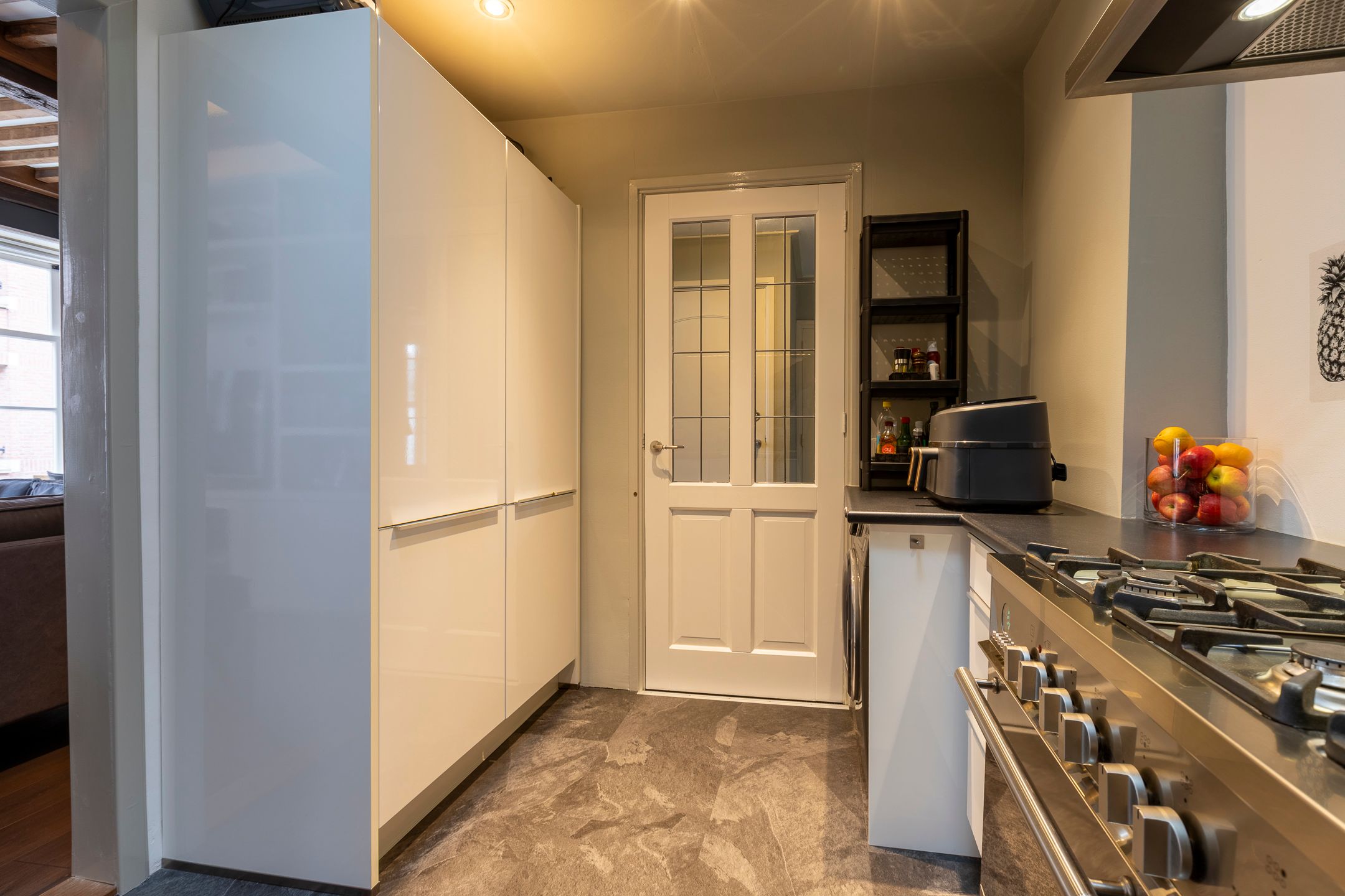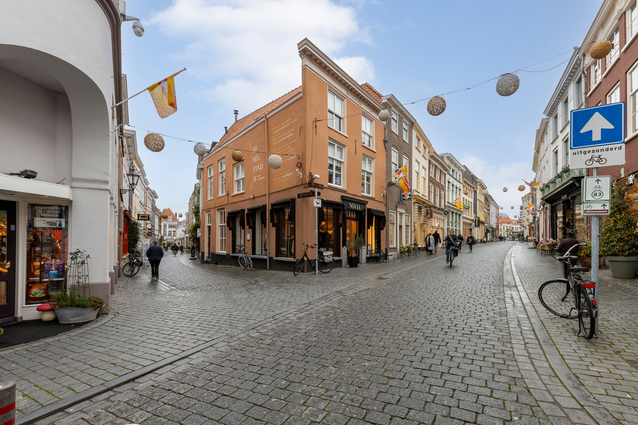 Sfeervol en ruim appartement met drie slaapkamers, prachtig dakterras en schitterend uitzicht op het Markiezenhof, midden in het historische centrum. In de sfeervolle binnenstad, in het gezellige Vierkantje en op steenworp afstand van alle voorzieningen die het stadscentrum te bieden heeft, bevindt zich dit karakteristieke appartement. De woning is rijk aan prachtige oude elementen, beschikt over drie slaapkamers en een riant dakterras. Begane grond Via de gezamenlijke entree bereikt u de voordeur van het appartement. Op de begane grond bevindt zich tevens voldoende bergruimte voor het stallen van fietsen of andere spullen. Een vaste trap leidt u naar de eerste verdieping en de tweede voordeur. Eerste verdieping Entree met toegang tot de toiletruimte met fonteintje. Vanuit de hal bereikt u de sfeervolle woonkamer met houten vloer, grote raampartijen en zicht op de levendige Kortemeestraat. De authentieke houten balken geven de ruimte een bijzonder karakter. De woonkamer staat in open verbinding met de keuken, welke is voorzien van een lichtkoepel en diverse inbouwapparatuur, waaronder een afzuigkap, gasfornuis, vaatwasmachine, vloerverwarming en oven. Tevens is hier een aansluiting aanwezig voor wasapparatuur. Via een kleine trap bereikt u een praktische multifunctionele ruimte voorzien van vloerbedekking, extra bergruimte en een tweede aansluiting voor wasapparatuur. Tweede verdieping De tweede verdieping is voorzien van een houten vloer en biedt toegang tot drie slaapkamers en een moderne badkamer. De badkamer beschikt over een douche en een wastafel in meubel. De eerste slaapkamer is opgedeeld in twee kamers, beide met toegang tot het luxe dakterras. Ook de derde slaapkamer heeft via een openslaande deur toegang tot dit terras. De riante derde slaapkamer is uitgerust met een wastafel en tweede toilet in meubel, vloerbedekking, veel bergruimte en een trapopgang naar een extra multifunctionele ruimte. Hier bevindt zich tevens de CV-ketel (2019). Buiten Aan de achterzijde bevindt zich het royale dakterras, afgewerkt met een composiet vloer en aluminium lamelpanelen voor een strakke uitstraling en voorzien van een heerlijke zithoek met vaste overkapping van aluminium. Vanaf hier heeft u een prachtig uitzicht op het historische Markiezenhof, een unieke plek om te genieten. Algemeen 3 slaapkamers Midden in het centrum Uitzicht op het Markiezenhof Ruimte voor fietsen Prachtige oude elementen Unieke locatie in het historisch centrum