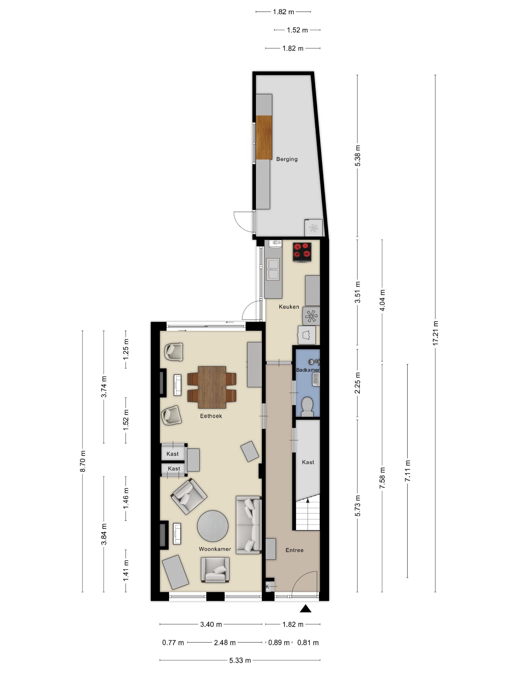 Fijn wonen met de stad binnen handbereik! Op een gunstige locatie, op loopafstand van het stadscentrum en diverse supermarkten, bevindt zich deze leuke (her)starterswoning. De woning biedt een praktische indeling en vormt een solide basis voor wie naar eigen wens wil moderniseren. Op de begane grond treft u een gezellige woonkamer en een dichte keuken, beide met duidelijke kansen voor vernieuwing en verbetering. De eerste verdieping beschikt over vier slaapkamers, waardoor er voldoende ruimte is voor uiteenlopende woonwensen, zoals werken vanuit huis of het creren van extra bergruimte. De diepe achtertuin, gesitueerd op het westen, biedt een prettig buitenverblijf met veel licht in de middag en avonduren. Een ideale plek om naar eigen inzicht in te richten. De woning vraagt om renovatie, maar juist daarin schuilt het plezier: je kunt hier een thuis creren dat werkelijk aansluit bij je eigen wensen en wooncomfort van nu. Een fijne kans voor wie graag zijn handen uit de mouwen steekt of simpelweg zoekt naar een woning met volop potentie. INDELING: Begane grond: Halentree met een trap naar de 1e verdieping, bergkast onder de trap, wandafwerking sierpleister en houten lambrisering, tegelvloer, plafond afgewerkt met boardplaten; meterkast met 2 groepen; betegeld toilet met een fonteintje en inloopdouche; woonkamer voorzien van 2-tal gaskachels, wandafwerking sierpleister, laminaatvloer, plafond afgewerkt met boardplaten, schuifpui naar tuinterras; dichte keuken, waarin geplaatst een in de lengte opgestelde inbouwkeuken, voorzien van een kunststof aanrechtblad met 1 spoelbak, aansluiting voor een gaskookplaat, afzuigkap, en opstelplaats cv-ketel t.b.v. warm water, wasmachine aansluiting, wandafwerking tegels, tegelvloer, plafond afgewerkt met houten schroten, deur naar tuinterras. 1e verdieping: Overloop, wandafwerking stucwerk, vloer afgewerkt met tapijt, plafond afgewerkt met boardplaten; slaapkamer rechts voor, wandafwerking glasvezelbehang, vloer afgewerkt met tapijt, plafond afgewerkt met boardplaten; slaapkamer links voor, wandafwerking glasvezelbehang, vloer afgewerkt met tapijt, plafond afgewerkt met boardplaten; slaapkamer links achter met luik naar bergzolder (niet bevloerd), wandafwerking glasvezelbehang, vloer afgewerkt met tapijt, plafond afgewerkt met kunststof schroten; slaapkamer rechts achter voorzien van gaskachel, wastafel en inbouwkast, wandafwerking renovliesbehang, vloer afgewerkt met tapijt, plafond afgewerkt met kunststof schroten. 2e verdieping: Bergzolder. Bijgebouwen: Berging. Tuin: Aangelegde tuin, terras bestraat met sierbestrating en voorzien van borders en een gazon. Bouwaard: Woonhuis: Traditioneel gebouwd, opgetrokken in metselbaksteen, begane grondvloer uitgevoerd in hout en beton, 1e verdiepingsvloer uitgevoerd in hout, onderschoten kap gedekt met keramische pannen en platdakconstructie gedekt met bitumineuze dakbedekking; Berging: Traditioneel gebouwd in halfsteensmetselwerk, betonvloer, platdakconstructie gedekt met bitumineuze dakbedekking. Isolatie: De woning is gedeeltelijk voorzien van isolerende beglazing. Verwarming en warmwatervoorziening: De woning is voorzien van verwarming d.m.v. gaskachels. De cv-ketel voorziet de woning van warm water (fabricaat Intergas).