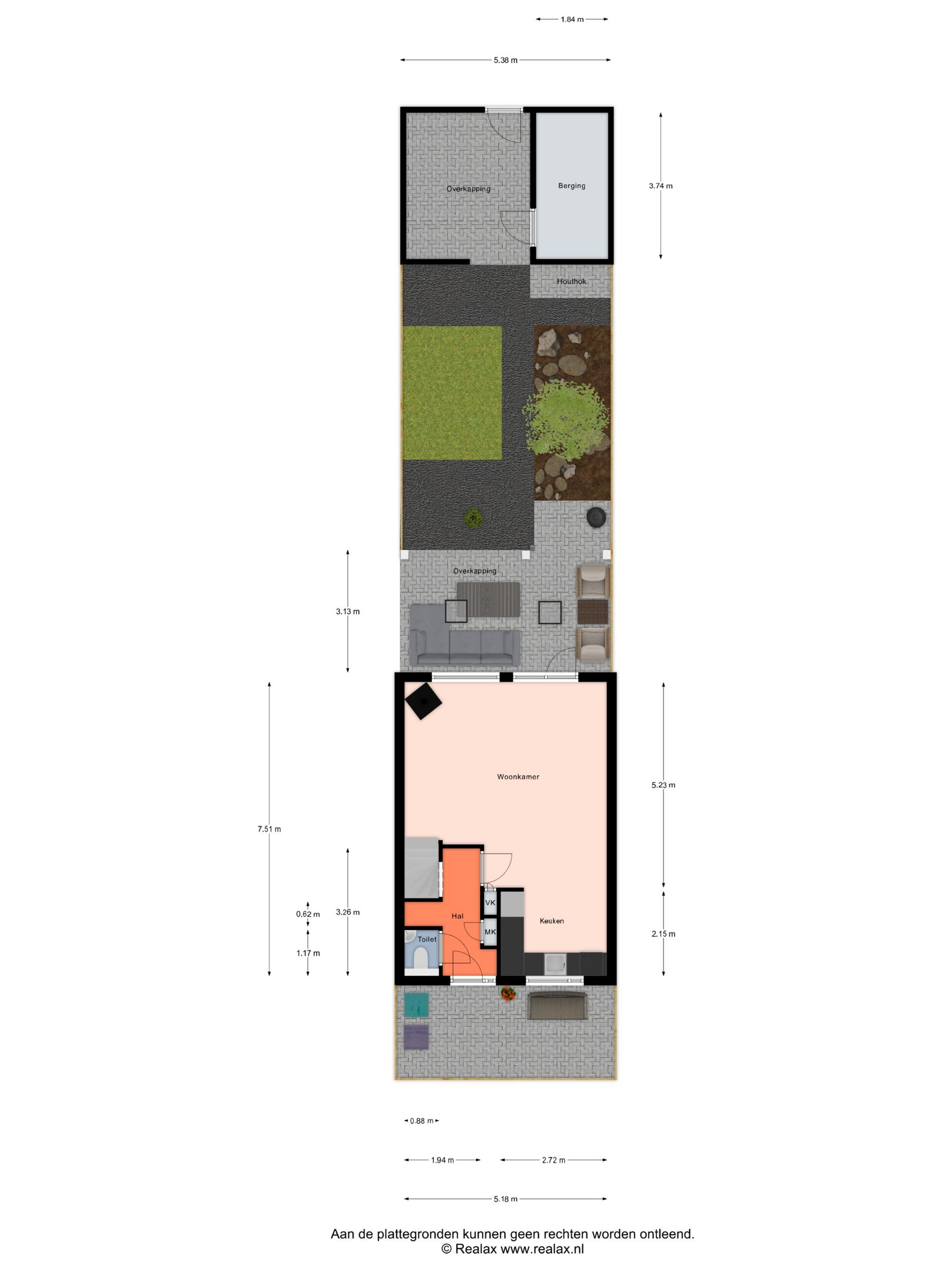 | Podwórko na zewnątrz | 69 m2 (12,60 meter diep en 5,51 meter breed) |