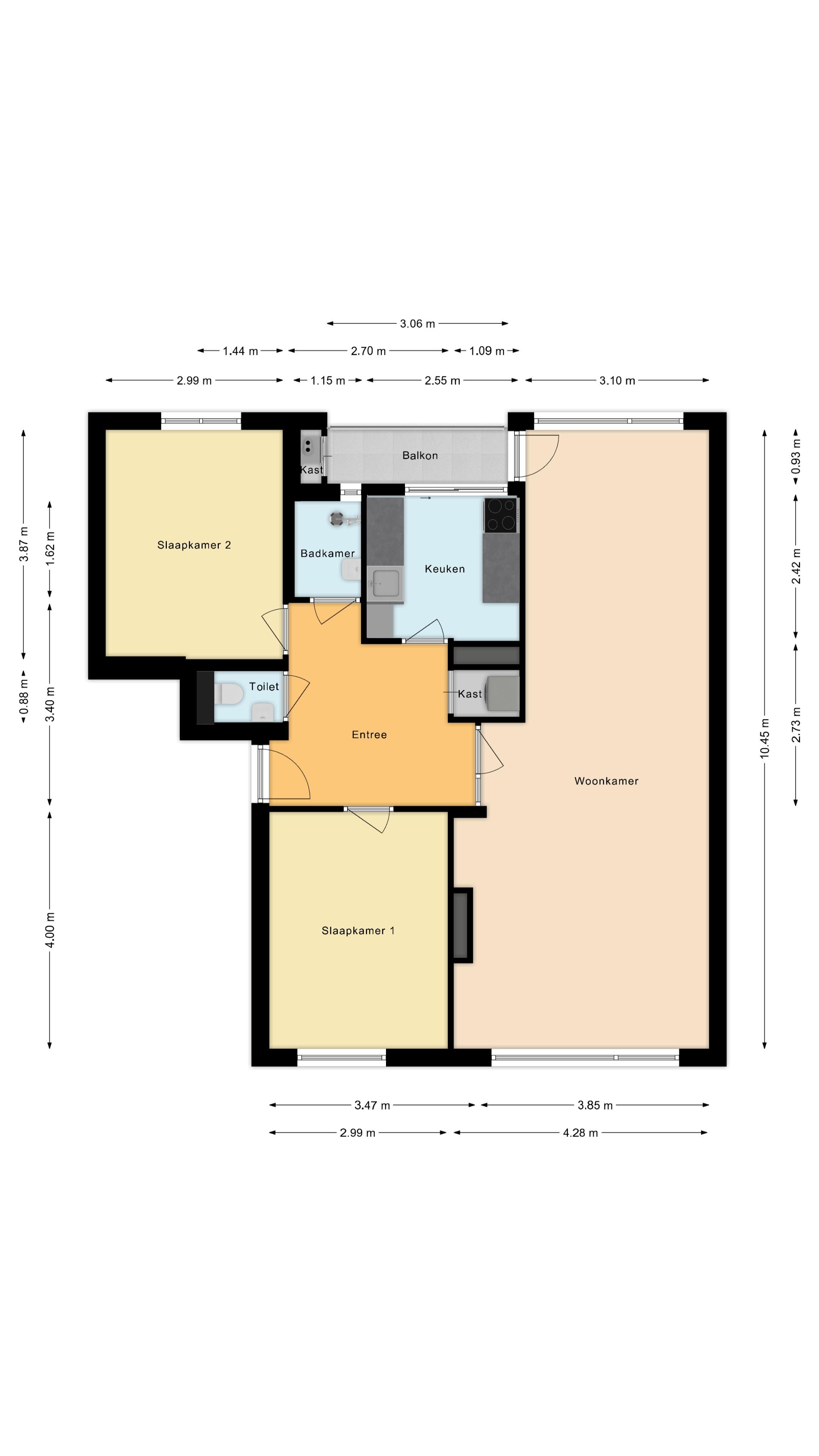 | Ilość pokoi | 3 kamers (2 slaapkamers) |