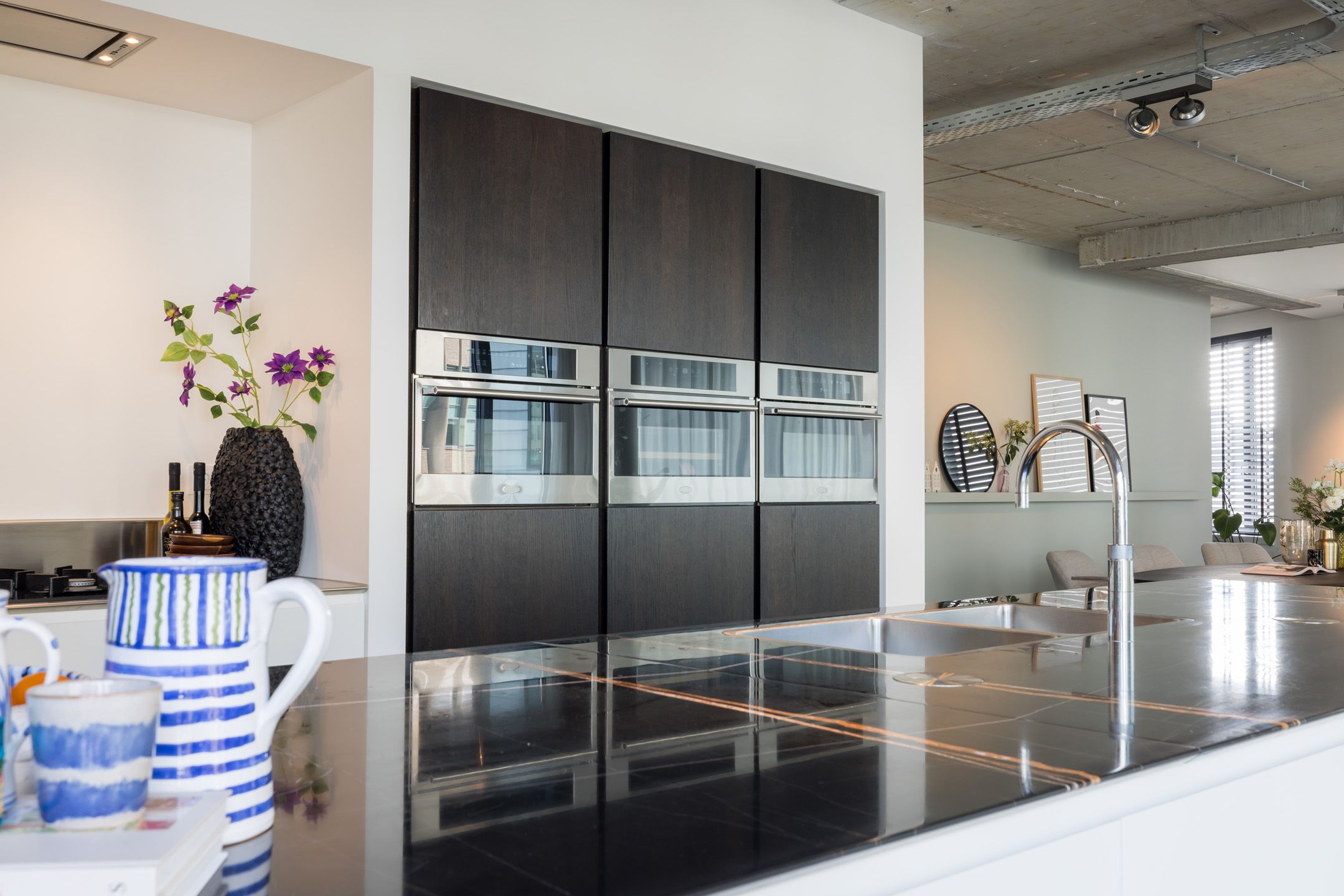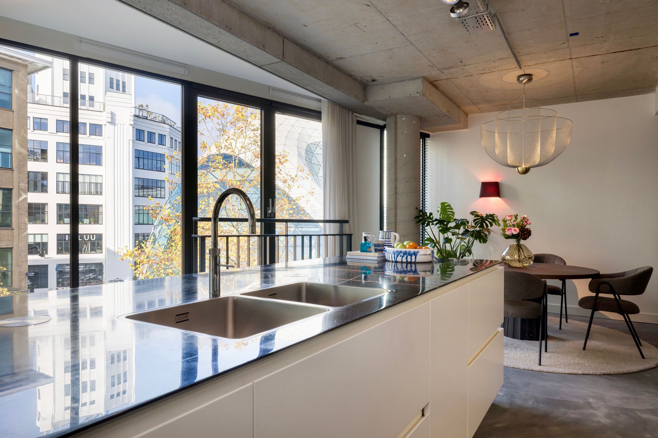 Dit weergaloze loftappartement van circa 200 m2 heeft een prachtige ligging in het hart van Eindhoven, schuin tegenover de Blob. De vele ramen, ruwe materialen en de warme kleuren zorgen voor een bijzondere, gelijkvloerse plek om te wonen. Omringd door de stadse dynamiek ervaart u hier een plek om heerlijk tot rust te komen en het uitzicht naar de historische, industrile gebouwen maakt het wonen op deze plek heel bijzonder. INDELING Het loftappartement is gesitueerd op de derde verdieping, direct onder het penthouse. Vanuit de grote ontvangsthal zijn de woonkamer, keuken, gastentoilet, meterkast en de slaapkamer te bereiken. De gestucte muren, de stoere betonvloer en de stalen pui met openslaande deuren zorgen voor een uitnodigende ambiance. Links van de woonkamerdeur is de garderobe waardoor jassen en tassen geen storend element vormen. De keuken en woonkamer vormen samen een prachtige leefruimte met een industrile look dankzij het ruwe beton, betonvloer en de stalen elektrakokers. De grote ramen met schuifdeuren aan de voorzijde zorgen voor veel lichtinval en ook aan de achterzijde zijn diverse ramen zichtbaar. Geniet vanaf de bank en de eettafel van het uitzicht naar de Lichttoren, de Admirant en de Blob, drie architectonische iconen van Eindhoven. Aan de achterzijde is de intieme tv-hoek die naar wens getransformeerd kan worden in twee slaap-werkkamers. Voor kookliefhebbers is de op maat gemaakte eilandkeuken met apparatenwand een lust voor het oog. Het prachtige blad van marmer vormt een stijlvolle combinatie met de brede, witte lades en de hoge, donkere kasten. Alle denkbare apparatuur van gerenommeerde merken is ingebouwd en in de woonkamer zijn twee inpandige bergingen ten behoeve van opslag. Vanuit de hal en de tv-kamer is de masterbedroom te bereiken. Hier valt uw oog op de op maat gemaakte, kamerhoge kastenwand en de vele kasten onder het raam. Prettige bijkomstigheid zijn de brede vensterbanken om uw mooiste eigendommen te etaleren. Achter de zwarte, stalen, glazen schuifdeur is de luxe badkamer gesitueerd. De ruimte is ingedeeld met een vrijstaand bad, inloopdouche, tweede toilet en een brede wastafel. Over ieder detail is nagedacht: de verlichting, het fijne stucwerk, de glans van de mozaekstenen in de douche en het sanitair van topkwaliteit. Laat u verleiden door de ruimte, lichtinval en de unieke ligging in het centrum van Eindhoven. Met de Blob, de Admirant en de Lichttoren als uitzicht weet u zeker dat u op een bijzondere plek woont. BIJZONDERHEDEN - In de huidige indeling is er n zeer ruime slaapkamer maar op een eenvoudige wijze zijn twee extra slaap-werkkamers te realiseren; - Bergkast in gemeenschappelijke kelder; - Het complex is voorzien van een lift; - Aluminium kozijnen aan de voorzijde (< 2015) en een de achterzijde (20192020), voorzien van isolatieglas; - Energielabel A; - Verwarming en warm water via een HR-ketel (Nefit, 2016); - Vloerverwarming in het gehele appartement; - De elektrische installatie is in 20152016 geheel vernieuwd; - Mogelijkheid voor het realiseren van twee extra slaap-werkkamers; - Toplocatie in het centrum van Eindhoven met uitzicht naar de Lichttoren, de Admirant en de Blob; - Servicekosten 240,- per maand; - Inclusief 1 parkeerplaats in de tegenovergelegen Lichttoren.