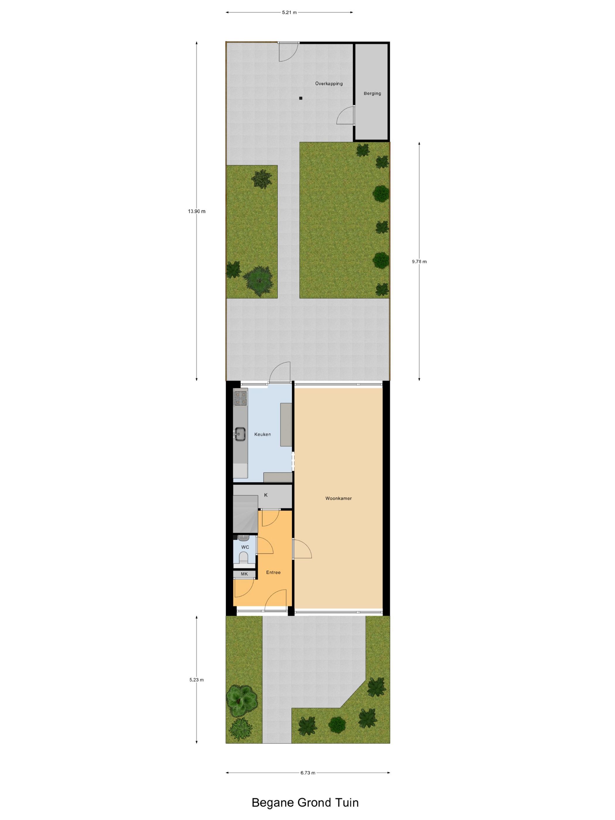 | Ekspozycja ogrodowa | 78 m2 (13,00 meter diep en 6,00 meter breed) |