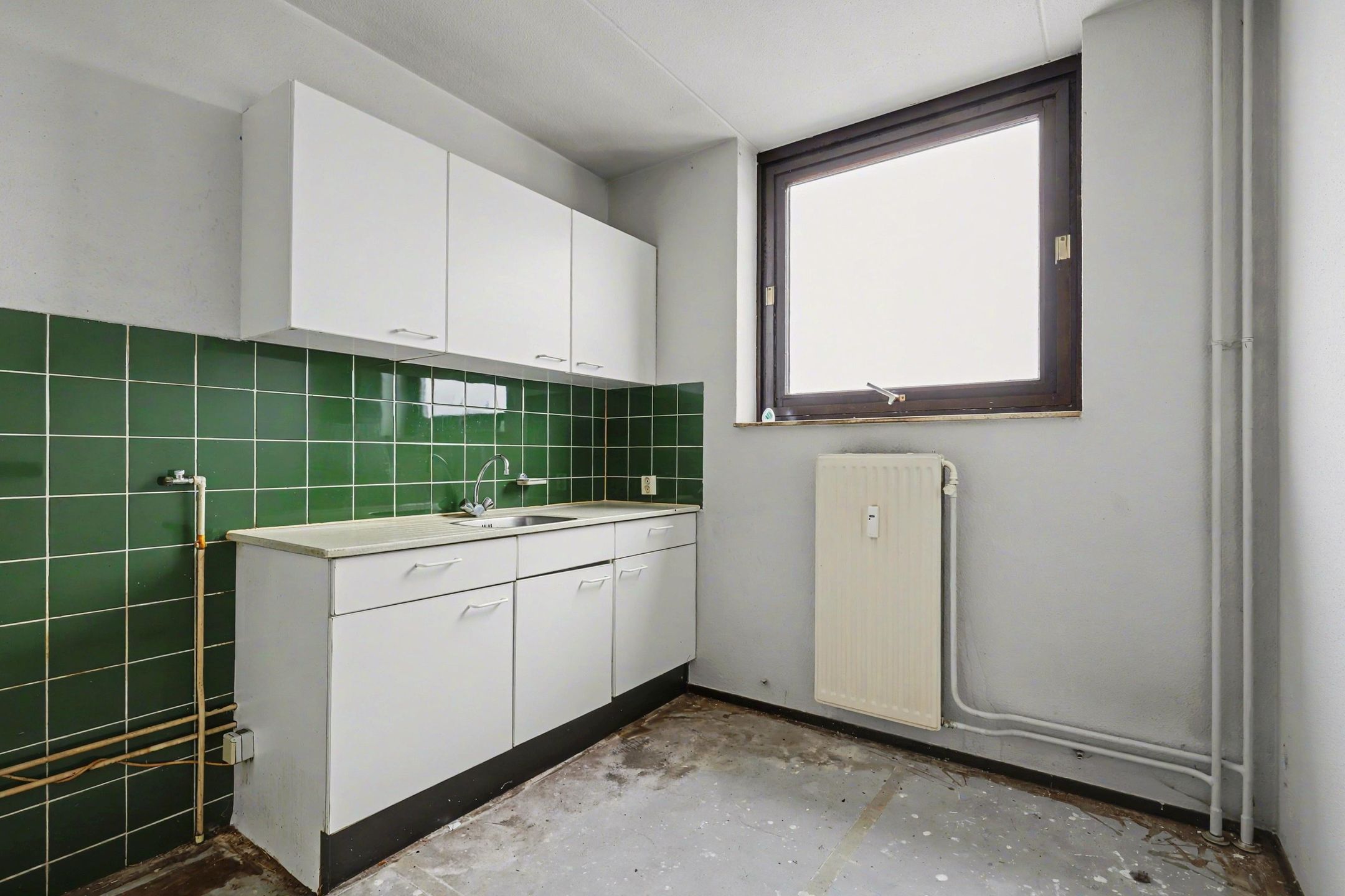 Parkstad Makelaardij oferuje mieszkanie do gruntownego remontu, zlokalizowane przy ul. Drieoortsput 105 w Heerlen. Mieszkanie stanowi doskonałą bazę dla osób, które chcą zrealizować własne marzenia mieszkaniowe. Nieruchomoć składa się z przestronnego salonu, oddzielnej jadalni z wyjciem na balkon, oddzielnej kuchni, jednej sypialni, łazienki, oddzielnej toalety oraz zewnętrznego pomieszczenia gospodarczego. Ze względu na koniecznoć remontu, mieszkanie jest idealne dla osób kupujących po raz pierwszy, majsterkowiczów lub inwestorów. Salon jest przestronny i oferuje różnorodne możliwoci aranżacji. Obok znajduje się jadalnia z wyjciem na balkon. Kuchnia znajduje się w oddzielnym pomieszczeniu i wymaga modernizacji. Sypialnia ma wymiary około 3,94 x 2,98 metra. azienka wyposażona jest w wannę i umywalkę, a toaleta jest dostępna osobno z wejcia. Mieszkanie ma powierzchnię mieszkalną około 76 m, balkon około 7 m i zewnętrzną komórkę lokatorską około 5 m. Lokalizacja jest korzystna w stosunku do sklepów, transportu publicznego i dróg głównych. --- Układ *Piwnica Zewnętrzna * Zewnętrzna komórka lokatorska ok. 1,60 x 3,19 m *Mieszkanie * Hol wejciowy * Salon * Jadalnia z wyjciem na balkon * Kuchnia (do remontu) * Sypialnia ok. 3,94 x 2,98 m * azienka * Oddzielna toaleta * Balkon --- Cechy szczególne * Mieszkanie wymaga całkowitego remontu * Powierzchnia mieszkalna ok. 76 m * Balkon ok. 7 m * Zewnętrzna komórka lokatorska ok. 5 m * Możliwoć własnego układu i wykoczenia --- Zastrzeżenie Gwarancja bankowa depozytu wynosi 10% ceny zakupu. Kupujący musi zdeponować ją u odpowiedniego notariusza w ciągu 2 tygodni od wyganięcia rezerwacji finansowania. Aby chronić interesy zarówno kupującego, jak i sprzedającego, wyraźnie zaznacza się, że umowa kupna tej nieruchomoci zostanie zawarta dopiero po jej podpisaniu przez obu strony (wymóg pisemny). Wszelkie informacje dotyczące nieruchomoci, przekazane przez nasze biuro, należy traktować jako zaproszenie do negocjacji i są one całkowicie niewiążące. Podane wymiary są przybliżone. Na ich podstawie nie można wywodzić żadnych praw. Załączony rzut piętra ma charakter poglądowy i nie może być podstawą do wysuwania żadnych roszcze. Jeli kocioł centralnego ogrzewania i/lub system ciepłej wody użytkowej jest lokalem wynajmowanym, kupujący musi przejąć umowę najmu.