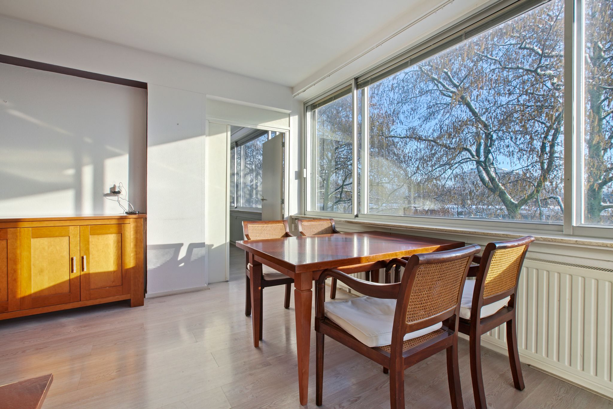 Licht en modern 3-kamerappartement met balkon en fraai uitzicht in het Stadshart van Amstelveen In het bruisende Stadshart van Amstelveen ligt dit goed onderhouden en lichte 3-kamerappartement, gelegen op de vierde verdieping van een verzorgd appartementencomplex met lift. De woning beschikt over twee slaapkamers, een ruime woonkamer, een moderne keuken en badkamer, en een royaal balkon met vrij en weids uitzicht. Dankzij de gunstige ligging combineert dit appartement comfortabel wonen met alle stedelijke voorzieningen binnen handbereik. Ligging De locatie is uitstekend: direct bij het Stadshart van Amstelveen met een uitgebreid aanbod aan winkels (waaronder de Bijenkorf), supermarkten, horeca, cultuur en ontspanning zoals de Stadsschouwburg, bibliotheek, P60 en het Cobra Museum. Openbaar vervoer (busstation, tram 5 en Amstelveenlijn) bevindt zich op loopafstand met snelle verbindingen naar onder andere Amsterdam Centrum, Zuidas, Schiphol en Haarlem. Met de auto zijn de A9, A4 en de Ring A10 eenvoudig bereikbaar. Aan de achterzijde en in de nabije omgeving bevinden zich groene gebieden zoals het Meanderpark, Broersepark, De Poel en het Amsterdamse Bos. Bovendien zal in de komende jaren in het kader van de A9-transformatie een nieuw park worden gerealiseerd, wat het wooncomfort en uitzicht verder zal versterken. Indeling Via de afgesloten entree met intercom en lift bereikt u de vierde verdieping. De woning beschikt over een ruime hal met meterkast, bergkast, garderobe en een separaat toilet met fontein. De royale en lichte woonkamer is voorzien van grote raampartijen en biedt toegang tot het ruime balkon, waar u heerlijk kunt genieten van zon en uitzicht over groen en de omgeving. Aangrenzend bevindt zich de eetkamerslaapkamer met voldoende ruimte voor een grote eettafel. De keuken is modern en praktisch ingedeeld en voorzien van diverse inbouwapparatuur, waaronder een kookplaat, afzuigkap en combi-ovenmagnetron. Het appartement beschikt over twee goed bemeten slaapkamers, waarvan n met vaste kast. De badkamer is modern afgewerkt en uitgerust met een inloopdouche, wastafelmeubel en opstelling voor een wasmachinedroger. In de onderbouw bevindt zich een eigen berging, ideaal voor extra opslag of het stallen van fietsen. Bijzonderheden - Woonoppervlakte ca. 76m2 - 3-kamerappartement met twee slaapkamers - Balkon ca. 8m2 - Gelegen op de vierde verdieping met lift - Fraai en vrij uitzicht - Verwarming via blokverwarmingstadsverwarming - Warm water via (elektrische) boiler - Energielabel E - Professioneel beheerde en gezonde VvE - Servicekosten ca. 379,50 per maand (inclusief voorschot stookkosten) - Eigen berging in de onderbouw ca. 4m2 - Laadpalen aanwezig in de omgeving - Oplevering in overleg