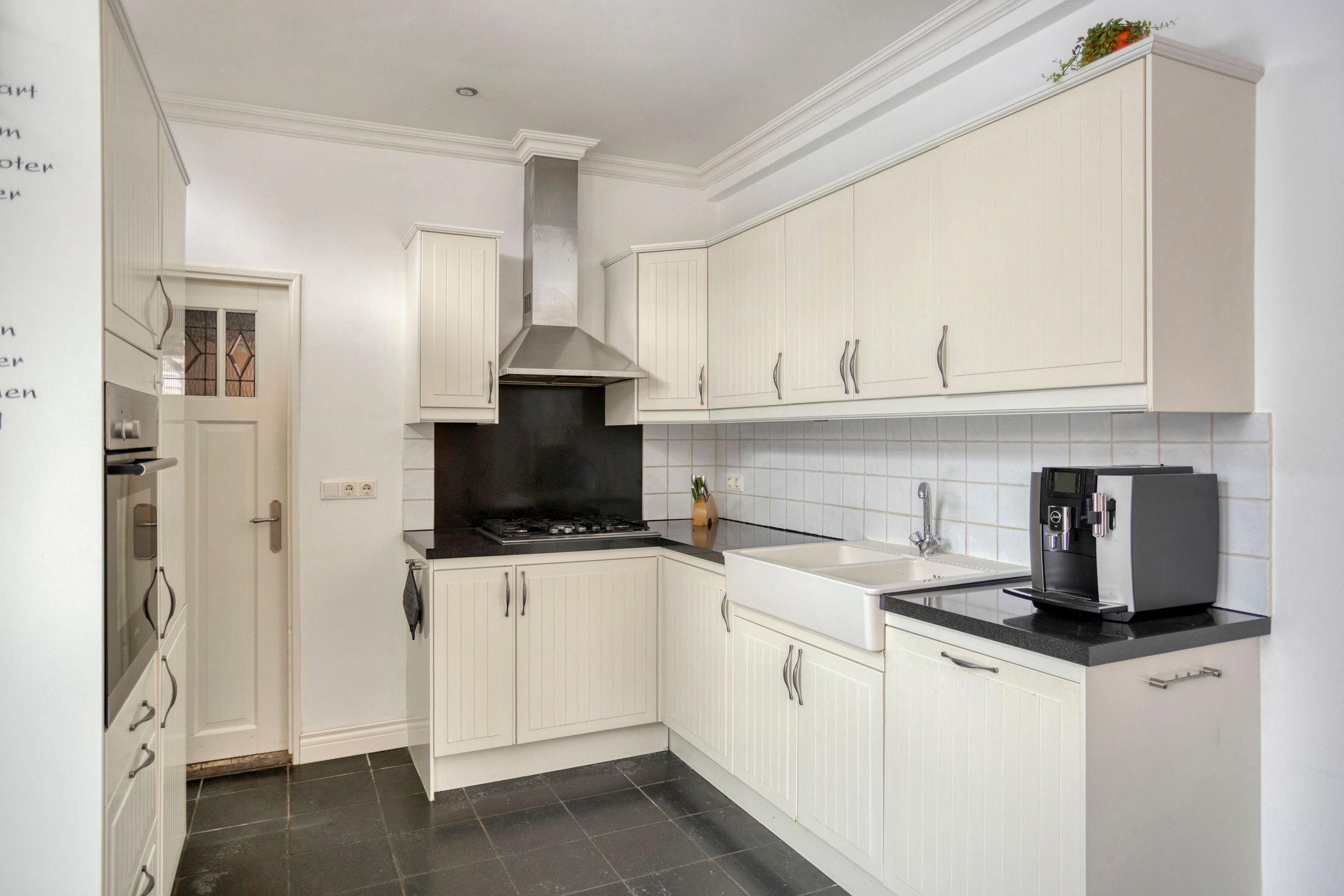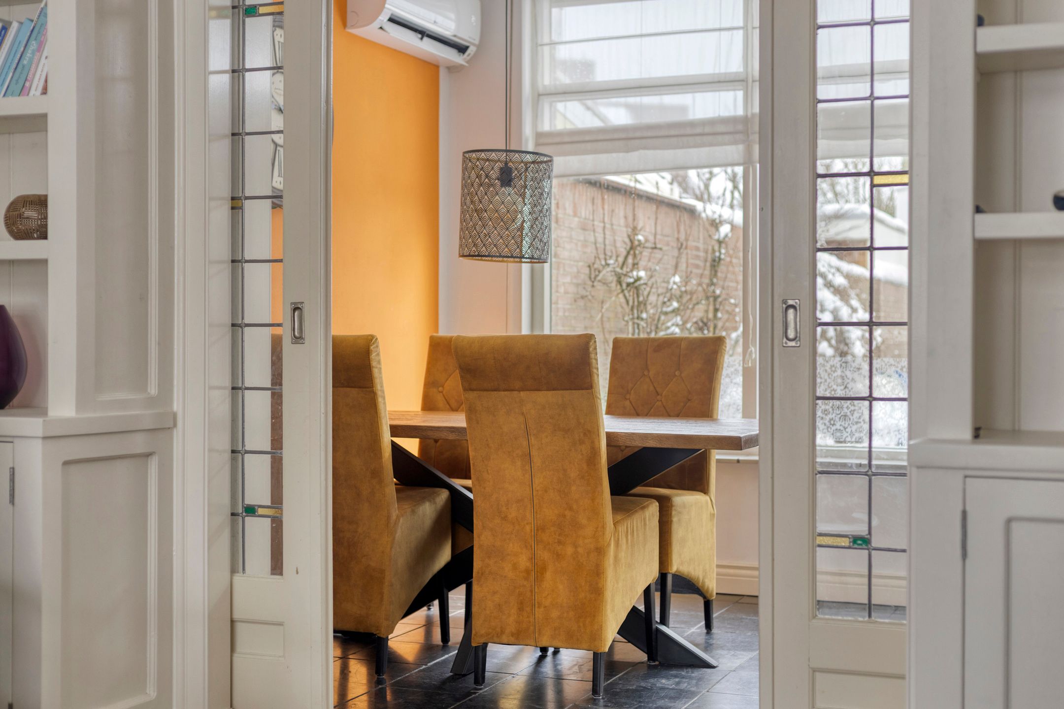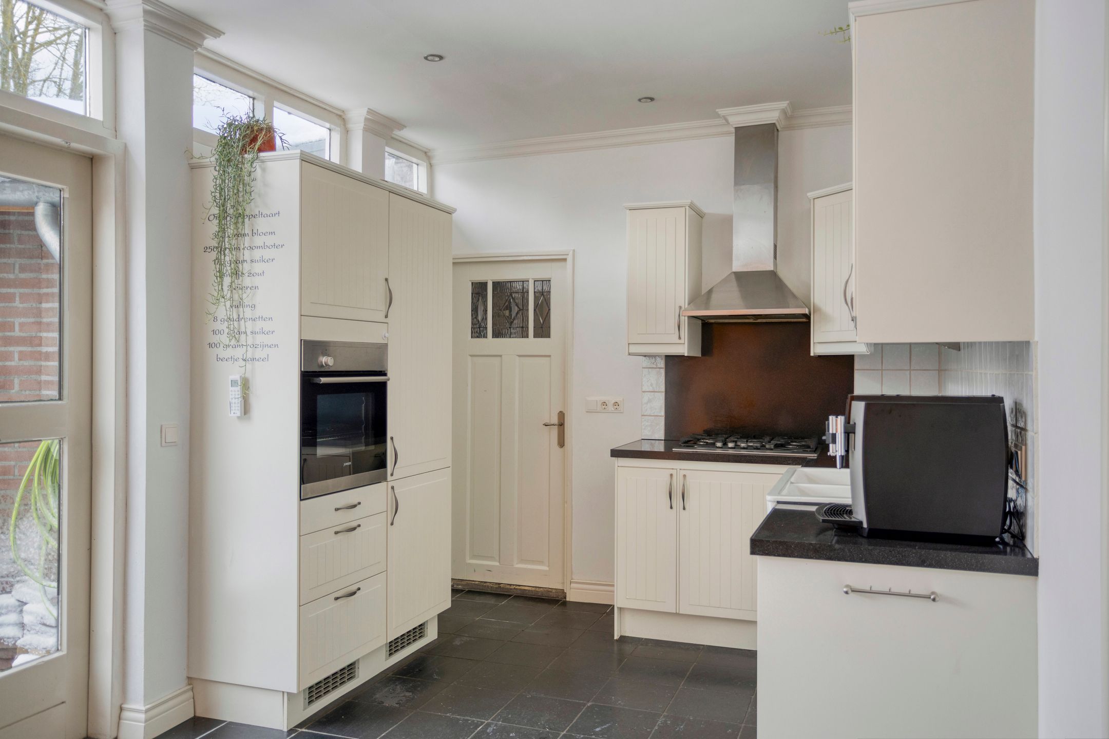 Karakter, sfeer en een verrassend praktische indeling: deze twee-onder-een-kapwoning in Vlokhoven heeft het allemaal. De woning is goed onderhouden, netjes afgewerkt en biedt volop leefruimte met onder andere een kamer-en-suite, twee slaapkamers, een extra slaap-werkkamer n een inpandige garage. Een fijn thuis op een centrale en levendige locatie. Beschrijving woning indeling Je komt binnen via de entree met hal en een nette, betegelde toiletruimte. De woonkamer ademt sfeer dankzij de fraaie houten vloer, de karakteristieke en-suite deuren met glas-in-lood en de op maat gemaakte kasten. Een fijne ruimte met duidelijke zit- en eetgedeeltes. De halfopen eetkeuken is praktisch ingericht in een hoekopstelling en uitgevoerd in lichte tinten. Voorzien van onder meer een rvs schouwkap, gaskookplaat, dubbele porseleinen spoelbak, vaatwasser, oven en een koel-vriescombinatie. Aansluitend bevindt zich een slaap-werkkamer, ideaal voor thuiswerken of gelijkvloers wonen. De inpandige garage is bereikbaar vanuit de woning en beschikt over een tegelvloer, aansluitingen voor wasapparatuur en een handige vliering. Op de eerste verdieping vind je de overloop, twee comfortabele slaapkamers en een volledig betegelde badkamer met ligbad, wastafelmeubel en designradiator. Een apart gelegen toiletruimte met fonteintje en aansluiting voor wasapparatuur. Via een vlizotrap is de bergzolder op de tweede verdieping bereikbaar: ideaal voor extra opslag. De achtertuin ligt op het zuidoosten en is voorzien van een houten veranda en een grote schuifpoort. Een prettige plek om van de ochtend- en middagzon te genieten. Omgeving De woning ligt op een aantrekkelijke locatie in de wijk Vlokhoven. Op loopafstand vind je Winkelcentrum Woensel met een compleet aanbod aan winkels, horeca en een gezondheidscentrum. Ook de Woenselse Markt, Kruisstraat, Karpendonkse Plas, TUe en Fontys Hogescholen liggen nabij. Daarnaast zijn er diverse scholen, sportaccommodaties, bushaltes en ziekenhuizen in de directe omgeving. Uitvalswegen zijn snel bereikbaar en het centrum van Eindhoven en het Centraal Station liggen op circa 15 fietsminuten. USPs op een rij * Twee-onder-een-kapwoning met karakteristieke afwerking * Goed onderhouden en verzorgd afgewerkt * Sfeervolle woonkamer met kamer-en-suite en glas-in-lood * Twee slaapkamers + extra slaap-werkkamer * Inpandige garage met vliering * Achtertuin op het zuidoosten met veranda * Energielabel C * Centrale ligging nabij winkels, scholen en uitvalswegen Een charmante woning met karakter, ruimte en een uitstekende ligging. Absoluut een bezichtiging waard!