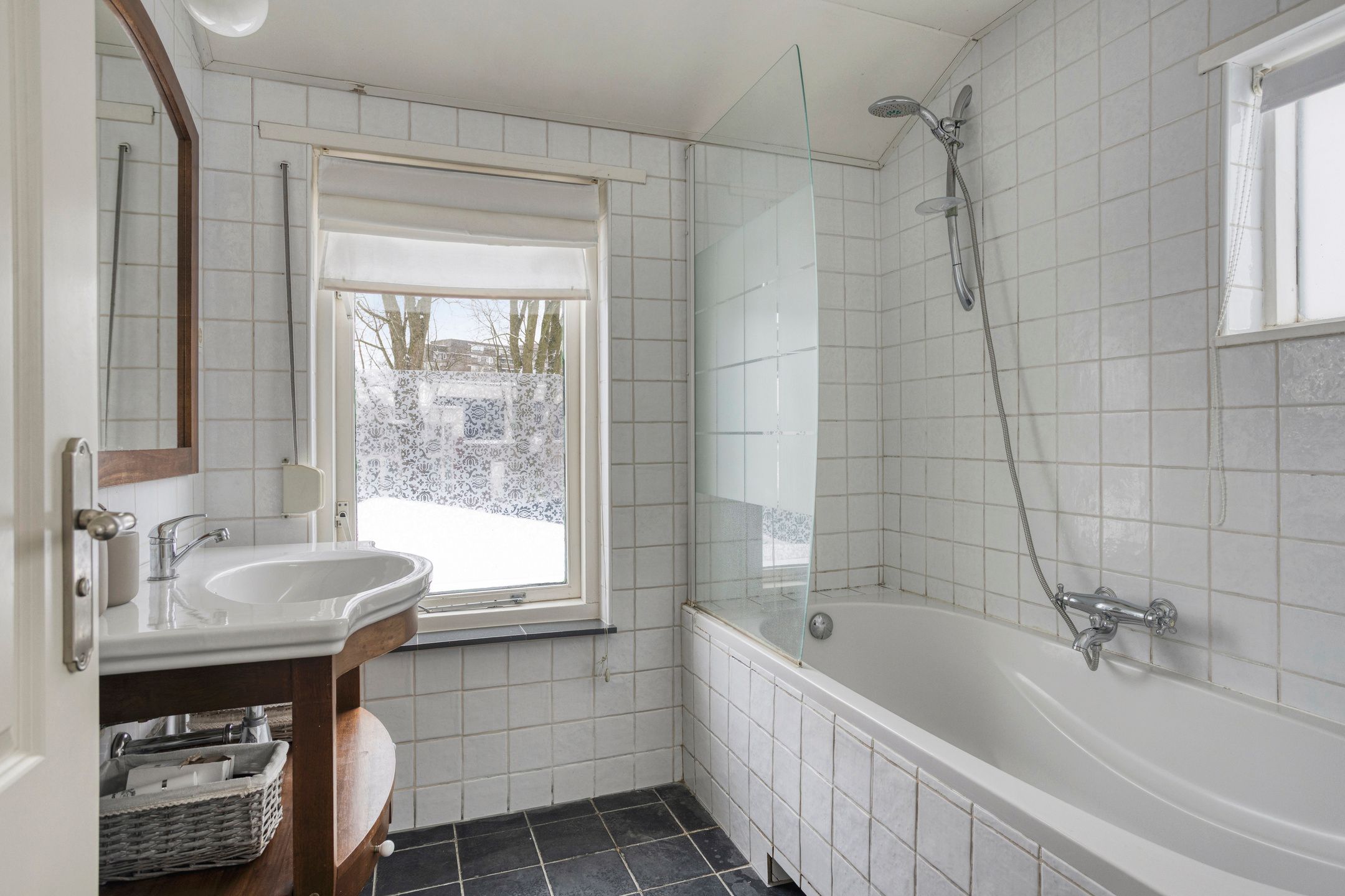 | Wyposażenie łazienki | Ligbad, wastafel, en wastafelmeubel |