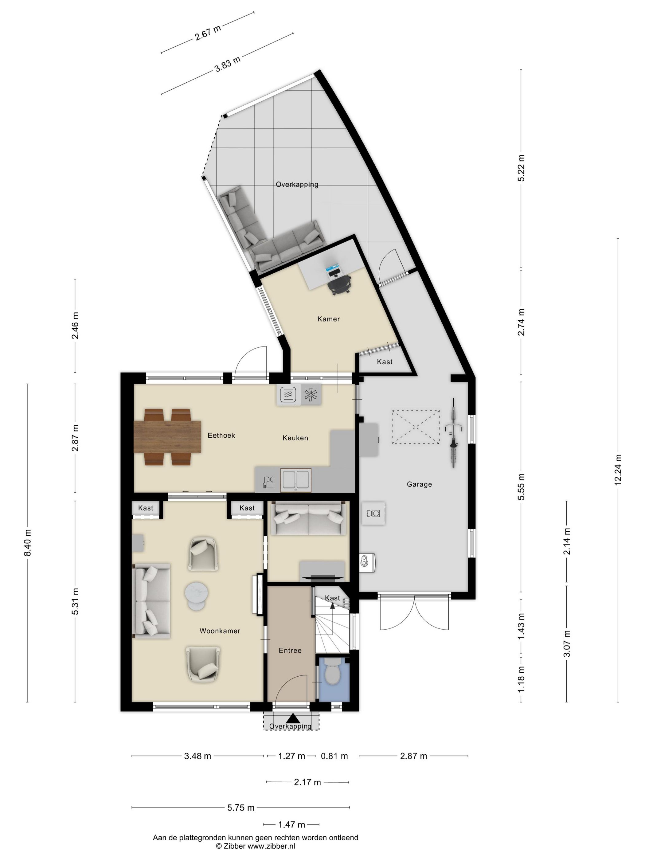 | Podwórko na zewnątrz | 58 m2 (12,44 meter diep en 8,45 meter breed) |