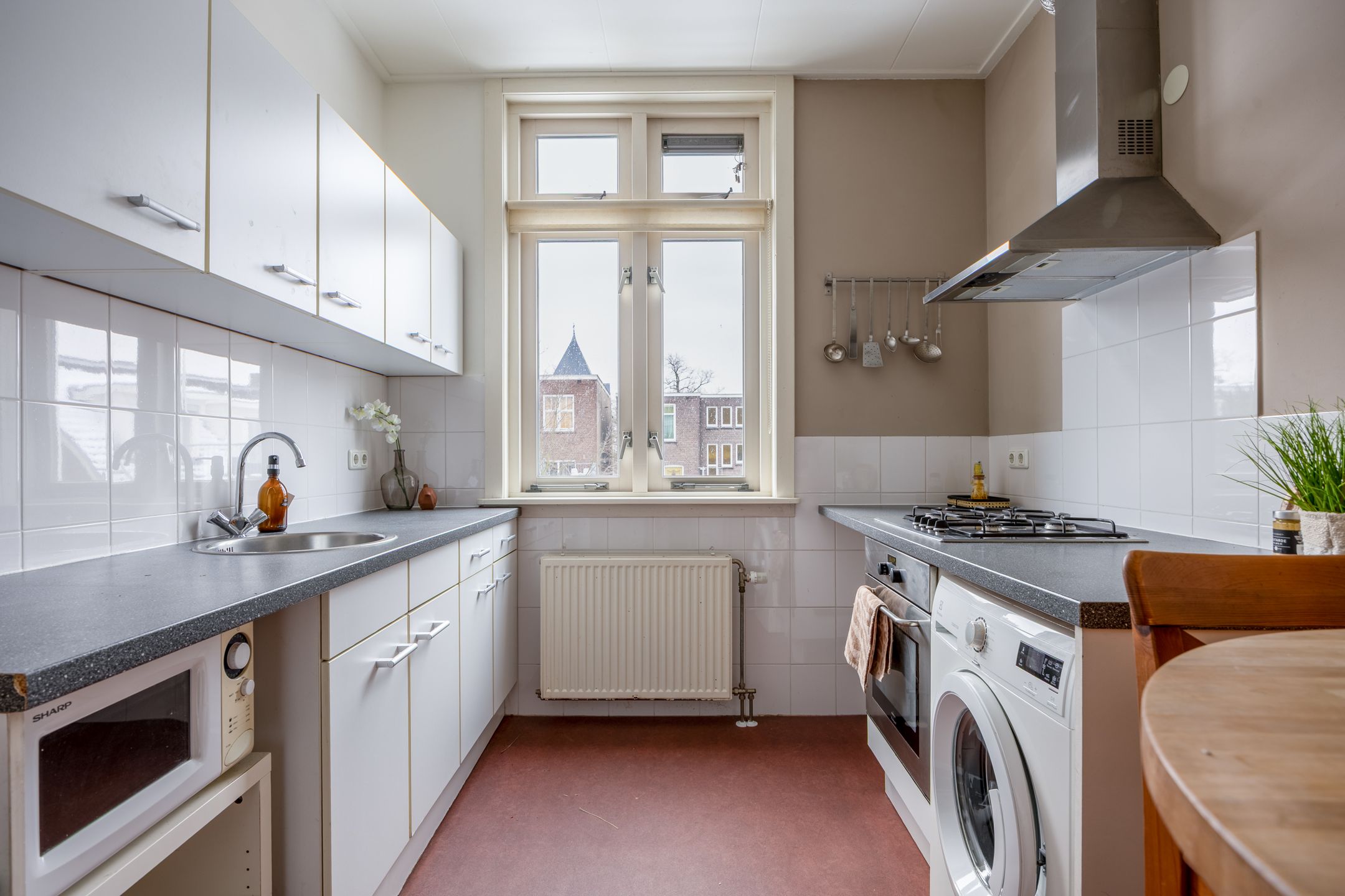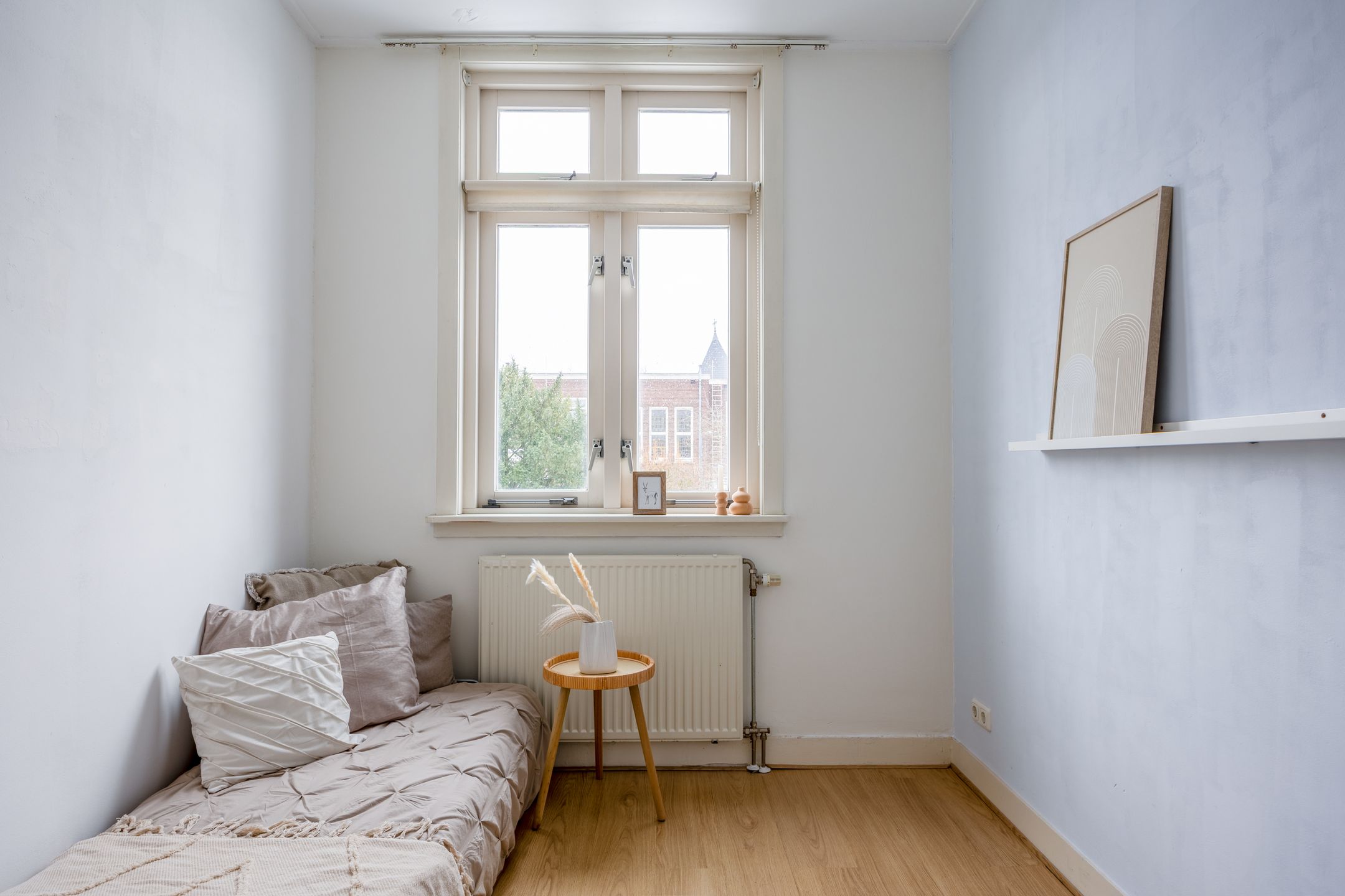 Aan de Gerard Noodtstraat 141 bevindt zich deze sfeervolle bovenwoning uit 1907, gelegen op de bovenste woonlaag van een karakteristiek pand in het hart van Nijmegen. De woning maakt deel uit van een gemeentelijk monument, ontworpen door architect Willem Hoffmann in de bekende Jugendstil-Art-nouveau-stijl. Met drie slaapkamers, een lichte woonkamer en hoge plafonds ademt deze woning de sfeer van begin vorige eeuw, gecombineerd met het comfort van nu. De woning ligt aan een rustige straat midden in het historische stadscentrum van Nijmegen. Op loopafstand bevinden zich diverse winkels, gezellige horecazaken, het Valkhofpark, de Waalkade en het station. Hier woon je in het hart van de stad, maar met een verrassend rustige en karaktervolle woonomgeving. De fraaie gevels en het groene straatbeeld zorgen voor een prettige, levendige sfeer. Indeling: Via de gezamenlijke entree en trapopgang bereik je de bovenste verdieping van het pand. De lichte woonkamer biedt door de grote ramen en het vrije uitzicht een ruimtelijk gevoel en een mooie lichtinval. De hoge plafonds en authentieke details benadrukken het karakter van de woning. De half-open keuken is eenvoudig maar praktisch ingericht. Verder beschikt de woning over een badkamer met doucheruimte vaste wastafel, een aansluiting voor het plaatsen van een bad is aanwezig, een separate toiletruimte met fonteintje en een bergkast met de c.v.-opstelling. Tevens is er een gemeenschappelijke berging in de kelder. De woning telt drie slaapkamers: slaapkamer 1 (ca. 18 m2), slaapkamer 2 (ca. 15 m2), slaapkamer 3 (ca. 9 m2). Bijzonderheden: Bouwjaar: 1907 Woonoppervlakte: ca. 101 m2 Gelegen op de bovenste woonlaag Deels dubbele beglazing Gemeentelijk monument (exterieur) 3 slaapkamers Hoge plafonds en veel lichtinval Mogelijkheid tot plaatsen van zonnepanelen op het platte dak t.b.v. nr. 141 Centrale ligging in hartje Nijmegen Op loopafstand van winkels, horeca en de Waal