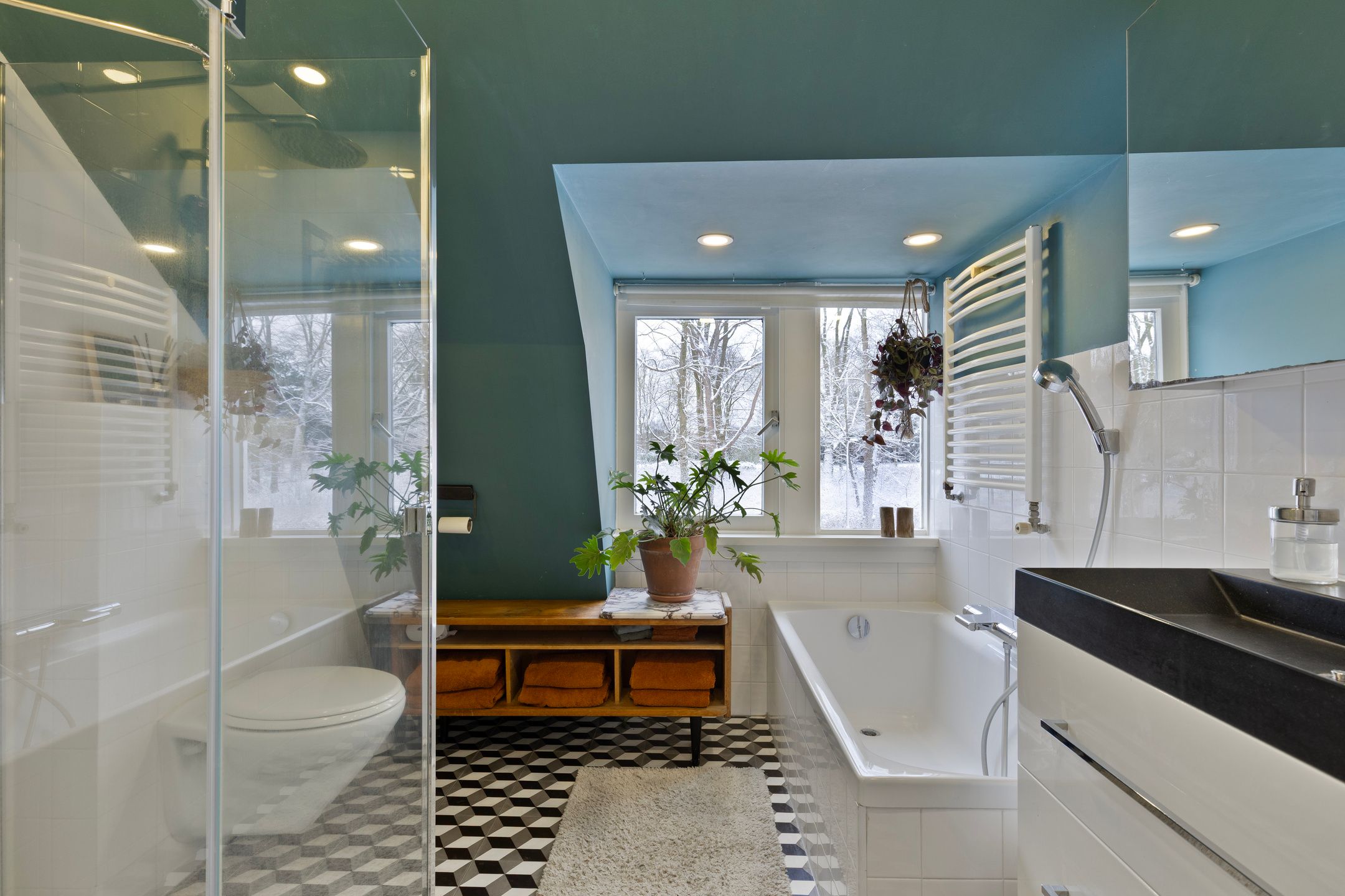 | Wyposażenie łazienki | Inloopdouche, ligbad, toilet, en wastafelmeubel |