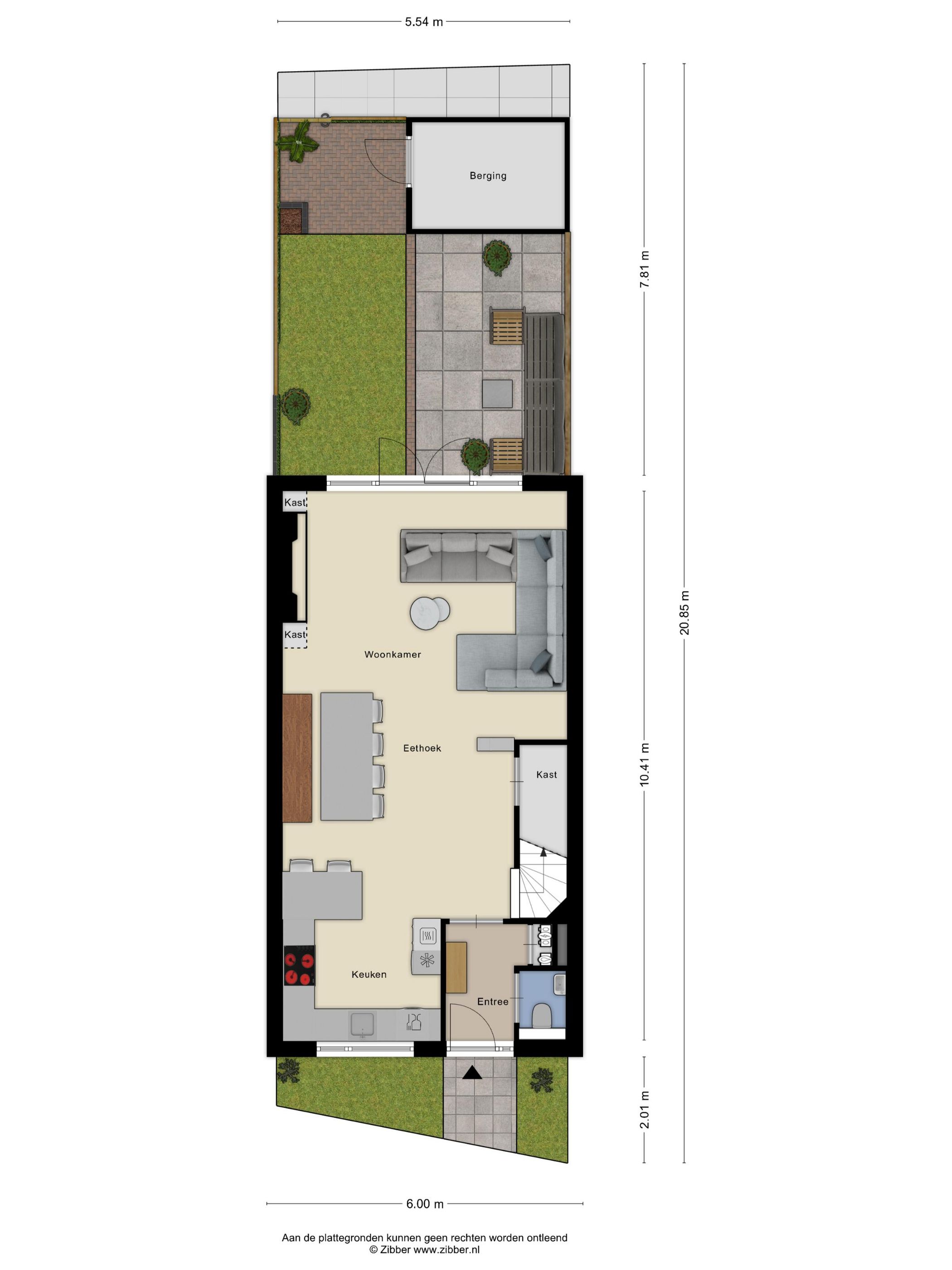 | Podwórko na zewnątrz | 43 m2 (7,81 meter diep en 5,54 meter breed) |